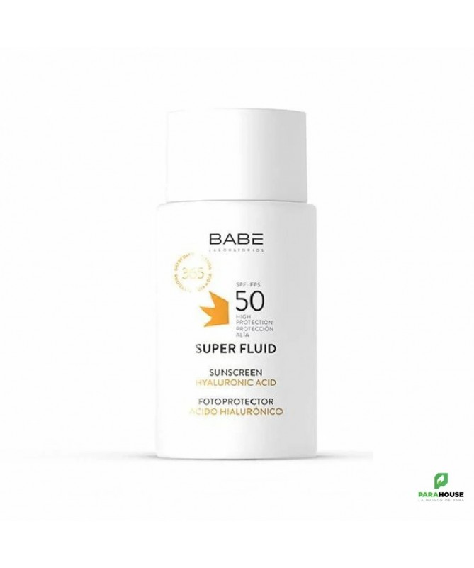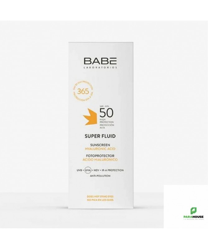 BABE Super Fluid Protection Solaire SPF 50 50ML BABE Super Fluid Protection Solaire SPF 50 est une haute protection solaire pour le visage à la texture très fluide. Convient à tous les types de peaux, même les plus sensibles. Babe Super Fluid, la protection solaire qui va au-delà de ce que vous aviez imaginé! Un crème facile à utiliser et à appliquer et qui s'adapte complètement à votre peau. Sa formule riche en Acide hyaluronique est très fluide et pénètre trés rapidement la peau. Elle laisse une sensation d'hydratation légère et non grasse. Elle offre aussi une haute protection contre le soleil dans un format pratique pour une utilisation quotidienne. Plus d'excuses pour ne pas protéger votre peau 365 jours par an, que vous soyez au bureau ou en train de bronzer sur la plage. Utilisez-la juste après votre crème hydratante, votre peau sera resplandissante, avec un toucher velouté. La crème Super Fluid protège également des rayons infrarouges, de la la lumière bleue émise par les écrans et appareils mobiles, et de la pollution. Elle convient à tous les types de peaux, résiste à l'eau et ne pique pas les yeux! Crème solaire visage SPF 50 à la texture très fluide. Protection à large spectre: rayonnement UVA-UVB, lumière bleue. Action hydratante grâce à l'Acide Hyaluronique. Action anti-pollution, antioxydante et protectrice de l'ADN grâce à la Carnosine. Finition soyeuse. Résistant à l'eau. Ne pique pas les yeux. Composition : AQUA,DICAPRYLYL CARBONATE,ETHYLHEXYL METHOXYCINNAMATE,PROPANEDIOL,DIBUTYL ADIPATE,BUTYL METHOXYDIBENZOYLMETHANE,ETHYLHEXYL TRIAZONE,BIS-ETHYLHEXYLOXYPHENOL METHOXYPHENYL TRIAZINE,C20-22 ALKYL PHOSPHATE,C20-22 ALCOHOLS,BENZOTRIAZOLYL DODECYL P-CRESOL,SODIUM HYALURONATE,CARNOSINE,TOCOPHEROL,CAPRYLYL/CAPRYL GLUCOSIDE,1,2-HEXANEDIOL,XANTHAN GUM,PARFUM,POLYACRYLATE CROSSPOLYMER-6,BHT,SODIUM HYDROXIDE,o-CYMEN-5-OL,CITRIC ACID Conseils d'utilisation : Utilisez BABE Super Fluid SPF 50 juste après votre crème hydratante, Convient à tous les types de peaux