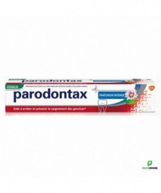Parodontax Fraicheur Intense 75ML Le dentifrice Parodontax Fraicheur Intense aide à arrêter le saignement des gencives et à réduire efficacement la plaque bactérienne Anti-tartre, anti-plaque, Protection gencives Lors de l'accumulation de la plaque bactérienne, les gencives peuvent présenter des rougeurs et une inflammation occasionnelle des gencives. Si la plaque bactérienne n'est pas éliminée efficacement et s'accumule, elle peut provoquer des gonflements. L'inflammation non traitée peut se développer et provoquer des saignements occasionnels des gencives. Contient 0.31% de Fluorure de Sodium. Composition : Sodium Bicarbonate, Aqua, Glycerin, Alcohol, Cocamidopropyl Betaine, Krameria Triandra Extract, Echinacea Purpurea Flower/Leaf Stem Juice, Aroma, Xanthan Gum, Chamomila Recutita Extract, Commiphora Myrrha Extract, Sodium Fluoride, Sodium Saccharin, Sodium Benzoate, Salvia Officinalis Oil, Mentha Piperita Oil, Mentha Arvensis Oil, Limonene, Linalool, CI 77491. Conseils d'utilisation: Il est recommandé de Brosser les dents 2 fois par jour avec le dentifrice Parodontax Fraîcheur Intense pour aider à arrêter le saignement des gencives.