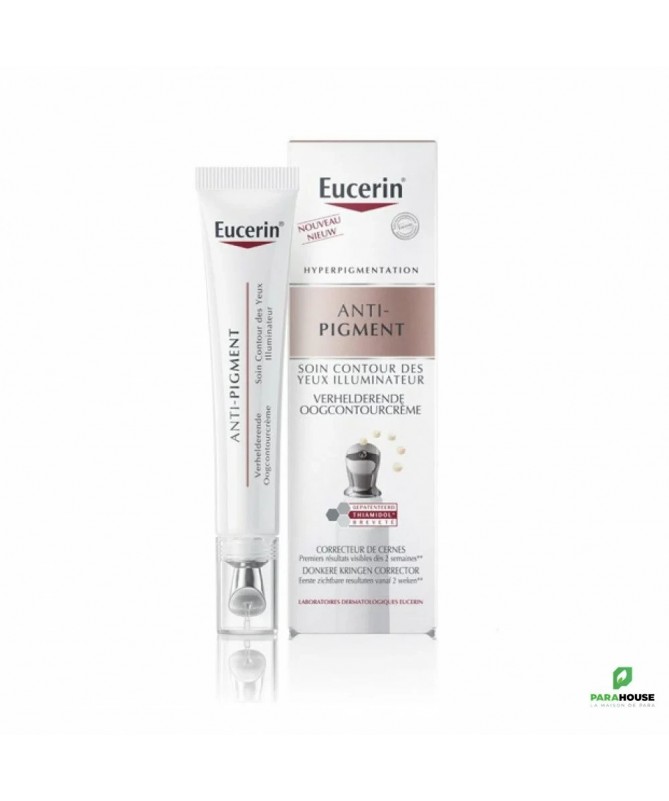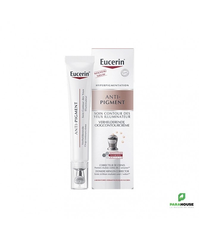 Description :Ce soin spécialement formulé pour la zone délicate du contour des yeux vous aidera à réduire les taches pigmentaires et à illuminer votre regard. Grâce à sa formule innovante, ce soin contient des ingrédients actifs tels que le Thiamidol, qui agit directement sur la production de mélanine pour réduire les taches brunes. Il est également enrichi en acide hyaluronique, connu pour ses propriétés hydratantes et repulpantes, pour une peau plus lisse et plus éclatante. Ce soin contour des yeux illuminateur EUCERIN ANTI-PIGMENT est idéal pour tous les types de peau, même les plus sensibles. Son embout métallique permet un effet frais immédiat dès l'application. Il convient également aux porteurs de lentilles de contact.Offrez à votre regard toute l'attention qu'il mérite avec le soin contour des yeux illuminateur EUCERIN ANTI-PIGMENT. Réduisez les taches pigmentaires et illuminez votre peau pour un regard éclatant de jeunesse. Commandez dès maintenant sur notre parapharmacie en ligne à prix discount.Conseils d'utilisation :Déposez une petite quantité sur l'applicateur métallique et utiliser l'applicateur pour appliquer le produit au-dessus et en dessous de l'œil. Massez de l'intérieur du contour de l'œil vers l'extérieur. Utilisez vos doigts pour tapoter le contour de l'œil jusqu'à ce que la formule soit entièrement absorbée. Maximum 4 applications par jour de tous les produits pour le visage contenant du Thiamidol®.Composition :Aqua, glycerine, CaprylicCapric Triglyceride, Alcohol Denat, Cocoglycerides, Cetearyl Alcohol, Cetyl Palmitate, Isopropyl Palmitate, Glyceryl Stearate, Diisopropyl Adipate, Butyrospermum Parkii Butter, Lauroyl Lysine, Sodium Hyaluronate, Glycyrrhiza Inflata Root Extract, Pimpinella Anisum Fruit Extract, Xanthan Gum, Sodium Stearoyl Glutamate, Sodium Chloride, Citric Acid, Sodium Hydroxide, Phenoxyethanol, Ethylhexylglycerin, Synthetic Fluorphlogopite, Trisodium EDTA, Tin Oxide, CI 77891, CI 77492, CI 77491, CI 77499