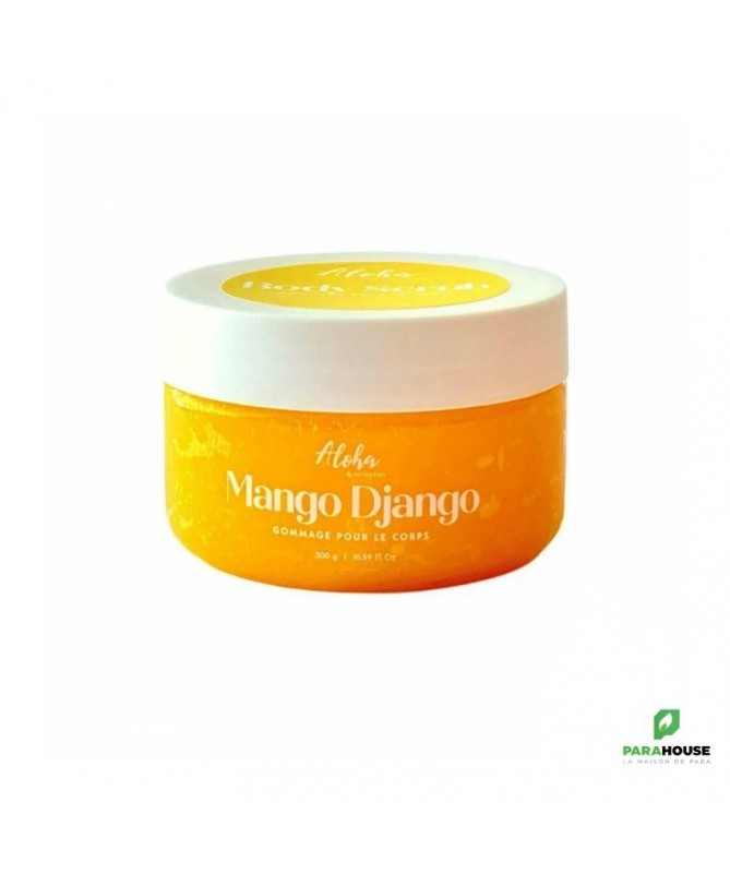 ALOHA Body Scrub Mango Django 300Gr ALOHA Body Scrub est un gommage pour le corps infuse d'un irresistible parfum sucre et fruite ( peche, ananas, mangue , pasteque, framboise, bonbon, citron vert et menthe ) Enrichi en ingrédients bénéfiques pour la peau, ce gommage associe les bienfaits de l'huile de noyau d'abricot, du beurre de karité, de la glycérine végétale, et du monoï de Tahiti. ALOHA Body Scrub elemine les impurtes et les cellules mortes, laisse la peau douce, lisse et revitalisée après chaque utilisation et nourrit et hydrate la peau en profondeur, la rendant plus souple et éclatante. Composition : Huile de Noyau d'Abricot: Nourrit et adoucit la peau grâce à ses propriétés hydratantes. Beurre de Karité: Connu pour ses vertus hydratantes et réparatrices, il aide à protéger et régénérer la peau. Glycérine Végétale: Hydrate et maintient l'équilibre hydrique de la peau, la laissant douce et souple. Monoï de Tahiti: Apporte une touche d'exotisme et une hydratation intense, tout en laissant un parfum délicat. Conseils d'Utilisation: Appliquer une quantité généreuse de gommage ALOHA Body Scrub sur une peau humide. Masser doucement en mouvements circulaires pour exfolier la peau. Rincer abondamment à l'eau tiède. Utiliser 1 à 2 fois par semaine pour des résultats optimaux.