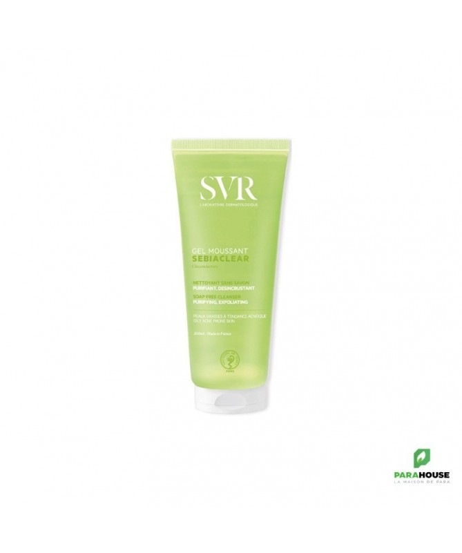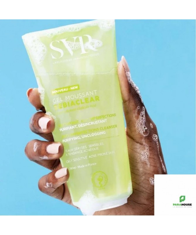 SVR SEBIACLEAR GEL MOUSSANT 200 ML SEBIACLEAR Gel Moussant est un nettoyant sans savon qui est destiné pour les peaux grasses et sensibles. C'est un purifiant et désincrustant pour le visage et le corps. Testé sur les peaux à tendance acnéique SEBIACLEAR GEL MOUSSANT nettoie et purifie la peau sans la déssecher grâce à sa mousse onctueuse. C'est un désincrustant puisqu'il élimine les impuretés et l'excès de sébum. Votre peau sera alors nette, fraîche et matifiée. Une formule adaptée aux peaux sensibles mixtes à grasses & à tendance acnéique : Gluconolactone : Purifie et désobstrue les pores Base lavante douce : nettoie et assainit tout en respectant l’équilibre des peaux sensibles Mat SR (0,5%) : régule l’excès de sébum. Composition : LAB17.01/A.23 - INGREDIENTS (CONTAINS) : AQUA/WATER/EAU, DISODIUMLAURETH SULFOSUCCINATE, COCO-BETAINE, PEG-7 GLYCERYL COCOATE, GLYCERIN, SODIUM LAURETH SULFATE, GLUCONOLACTONE, PEG-120 METHYL GLUCOSE DIOLEATE, CALCIUM GLUCONATE, SARCOSINE, BUTYLENE GLYCOL, CITRIC ACID, PENTYLENE GLYCOL, SODIUM CHLORIDE, SODIUM CITRATE, SODIUM HYDROXIDE, XANTHAN GUM, SODIUM BENZOATE, PARFUM (FRAGRANCE) Conseils d'utilisation : Il est indiqué d'appliquer SVR GEL MOUSSANT sur une peau mouillée.puis faire mousser puis rincer. Il faut faire mousser puis rincer tout en évitant le contact avec les yeux. Pour les peaux sensibles, mixtes à grasses & à tendance acnéique. Visage et corps.