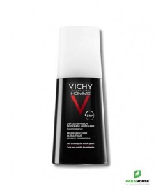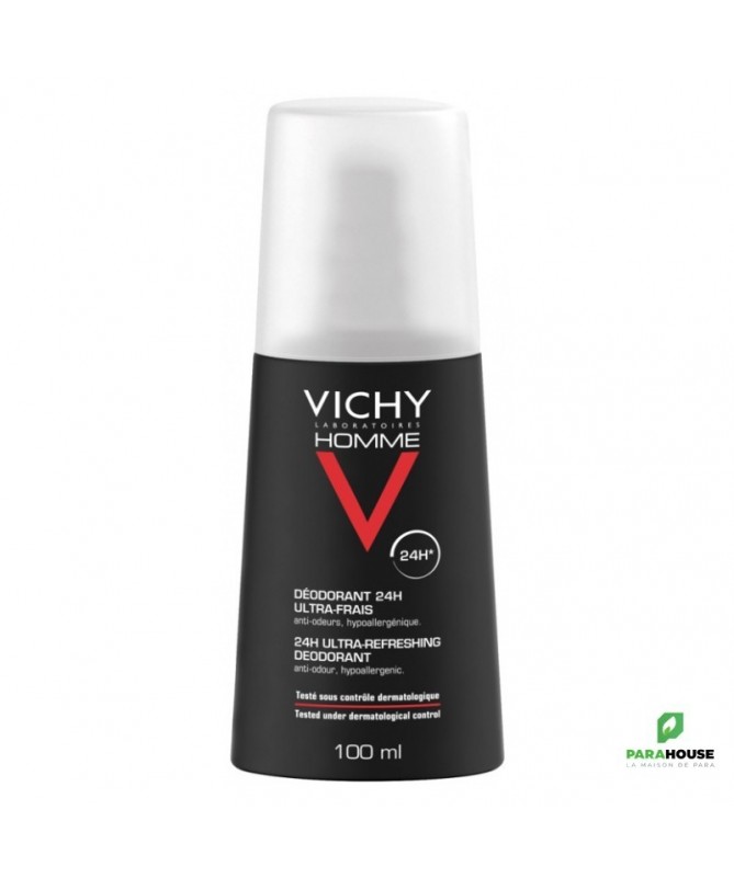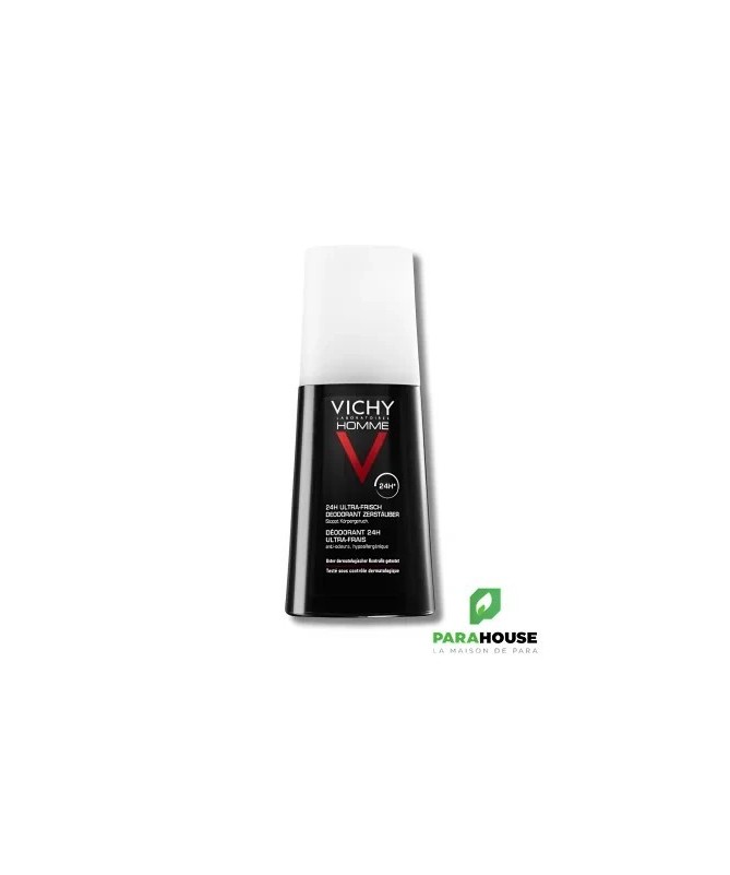Le Déodorant Ultra-Frais 24H Vichy Hommea été spécialement formulé pour répondre aux besoins des hommes à la peau sensible. Sa formule aux agents déodorants et antibactériens assure une protection efficace contre les odeurs pendant 24 heures, tout en offrant une sensation de fraîcheur intense et durable.Sans traces blanchesHypoallergéniqueTesté sous contrôle dermatologiqueFabriqué en FranceIndications :Convient aux peaux sensibles. Idéal pour un usage quotidien.Conseils d’utilisation :Appliquer matin et/ou soir sous les aisselles sur une peau propre et sèche.Précautions d’emploi :Aérosol inflammable. Utiliser à l’écart de toute flamme ou source de chaleur.Ne pas vaporiser sur une peau irritée ni vers les yeux.En cas de contact avec les yeux, rincer immédiatement et abondamment à l’eau.Composition (INCI) :Alcohol Denat., Aqua (Water), Parfum (Fragrance), Dipropylene Glycol, Lactic Acid, Triethanolamine, Zinc Ricinoleate.