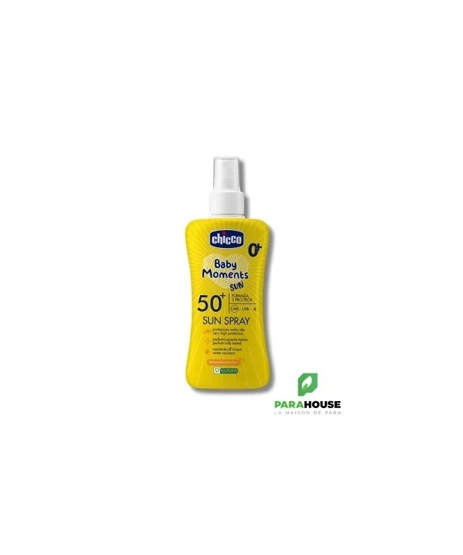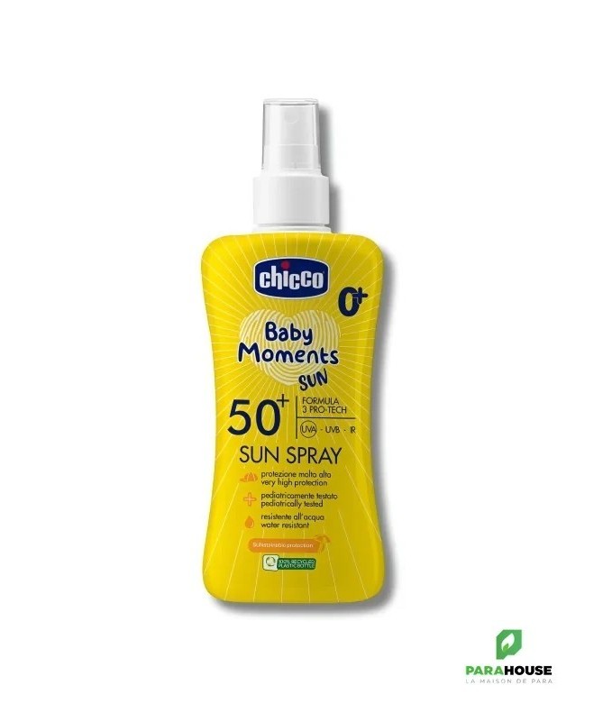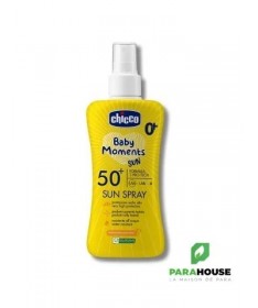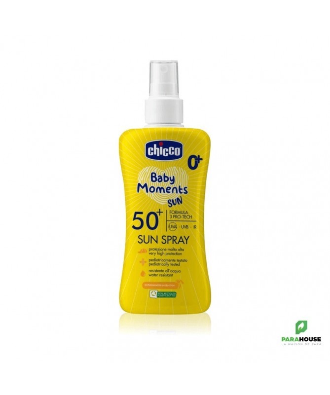 Chicco Baby Moments Sun Spray SPF50+LeChicco Baby Moments Sun Spray SPF50+est une brume solaire spécialement conçue pour la peau délicate des enfants. Elle offre uneprotection à large spectrecontre les rayons UVA, UVB et IR.Caractéristiques- Formule 3 Pro-Tech: assure une protection efficace contre les rayons UVA, UVB et IR.- Sans Oxybenzone ni Octinoxate.- Très haute protectioncontre les coups de soleil.- Sans alcooletsans parfum.- Testé dermatologiquementpour une utilisation sur les peaux sensibles.Conseils d'utilisationVaporisez le produit dans le creux de la main, puis appliquez-le sur la peau de bébé. Pour une protection optimale, appliquez le produit20 minutes avant l'expositionau soleil. Renouvelez l'application fréquemment, en particulier après chaque contact avec l'eau, sur peau sèche.