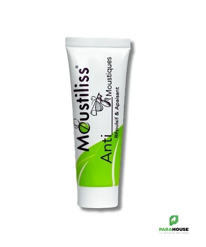 MOUSTILISS – Crème Anti-Moustique Répulsive et ApaisanteMOUSTILISSest une crème double action, formulée pour repousser efficacement les moustiques et apaiser la peau en cas de piqûres.- Protection longue durée :grâce à un actif répulsif puissant qui agit immédiatement après application.- Formule apaisante :enrichie en extraits naturels de camomille et d’aloe vera, elle soulage les démangeaisons causées par les piqûres.- Texture légère :nourrissante et facile à appliquer, elle pénètre rapidement sans laisser de film gras.Convient à toute la famille pour une utilisation quotidienne, surtout en zones à risque.