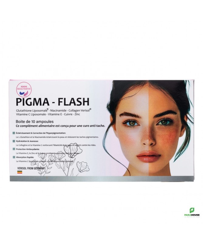 Description :Traitement Anti-Taches en Ampoules – Éclaircissement & Uniformité du TeintNous sommes ravis de vous présenter notre nouveau traitement ciblé, spécialement formulé pour réduire les taches pigmentaires et améliorer l’éclat du teint. Grâce à une synergie d’actifs puissants, ce soin contribue à l’unification du teint et à l’amélioration de la texture cutanée. Il s’adresse aux personnes souffrant d’hyperpigmentation (taches solaires, melasma, post-inflammatoires, etc.).Type : Traitement anti-taches sous forme d’ampoulesConditionnement :Boîte de 10 ampoulesContenance par ampoule : 25 mlIndications :Taches pigmentaires (liées au soleil, au vieillissement, au melasma ou post-inflammatoires)Teint irrégulier, peau ternePrévention du vieillissement cutané pigmentaireLes plus du produitFormule enrichie en antioxydants et agents éclaircissantsTexture fluide, pénétration rapideEfficacité visible en quelques semainesFormat pratique pour un usage quotidien ou en cure cibléeConseils D’utilisation :Utiliser 1 ampoule par jour, de préférence le matin ou le soir.Composition :Ce traitement associe des ingrédients reconnus pour leur efficacité dermatologique :Glutathion liposomal (500 mg) : Antioxydant majeur, il agit sur l’éclaircissement du teint.Vitamine C liposomal (250 mg) : Stimule la synthèse de collagène et réduit l’oxydation.Collagène Vertisol (1 g) : Améliore la fermeté et l’élasticité de la peau.Vitamine E (24 mg) : Protège les cellules contre les dommages oxydatifs.Niacinamide (20,8 mg) : Unifie le teint, réduit les taches pigmentaires et renforce la barrière cutanée.Cuivre (1,38 mg) : Participe à la synthèse du collagène.Zinc (1,5 mg) : Régule la pigmentation et favorise la cicatrisation.