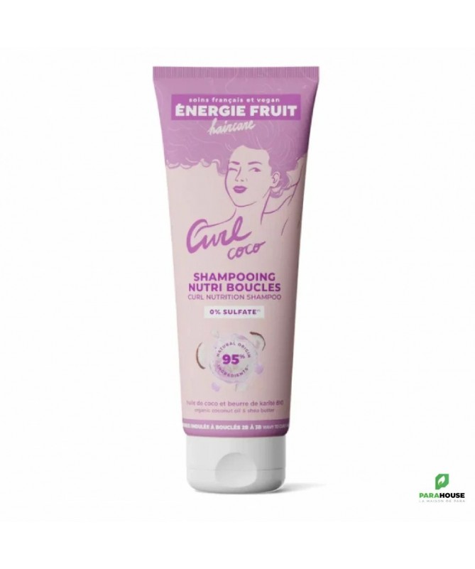 ENERGIE FRUIT SHAMPOOING NUTRI BOUCLES 250ML ENERGIE FRUIT SHAMPOOING NUTRI BOUCLES ; Shampooing nutritif sans sulfate pour boucles rebondies ! Formulé à l’huile de coco et au beurre de karité bio, il hydrate, définit et protège des frisottis. Résultat garanti : 100% des utilisatrices satisfaites ! Le Shampooing Nutri Boucles Énergie Fruit 250ml est spécialement conçu pour les cheveux ondulés à bouclés. Sans sulfate et enrichi en huile de coco et beurre de karité bio, il nettoie en douceur, hydrate intensément et redonne forme et volume aux boucles sans les agresser. Nettoyage doux : Formule pH neutre et sans sulfate qui préserve l’équilibre naturel du cuir chevelu. Hydratation profonde : L’huile de coco pénètre la fibre pour apporter douceur et éclat, même aux pointes fourchues. Définition des boucles : Le beurre de karité bio gaine les boucles, réduit les frisottis et booste le rebond. 0% Sulfates : Préservent les boucles des irritations et de la déshydratation. Composition : Aqua (Water), Sodium Lauroyl Methyl Isethionate, Caprylyl/Capryl Glucoside, PEG-150 Distearate, Coco-Betaine, Disodium Cocoamphodiacetate, Parfum (Fragrance), Citric Acid, Sodium Chloride, Sodium Benzoate, Polyquaternium-10, Potassium Sorbate, Linalool, Butyrospermum Parkii (Shea Butter)*, Cocos Nucifera (Coconut) Oil*, Acetic Acid, Glyoxal. Conseils d'utilisation : Appliquez une noisette de ENERGIE FRUIT SHAMPOOING NUTRI BOUCLES sur cheveux mouillés. Massez sur le cuir chevelu, en laissant descendre la mousse onctueuse sur les longueurs. Laissez poser un instant pour plus de soin, puis rincez abondamment. Pour des boucles rebondies et hydratées intensément, complétez votre routine par le masque et démêlant 2-en-1 nutri boucles.