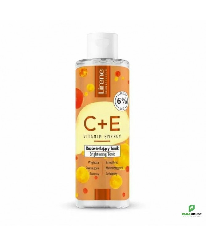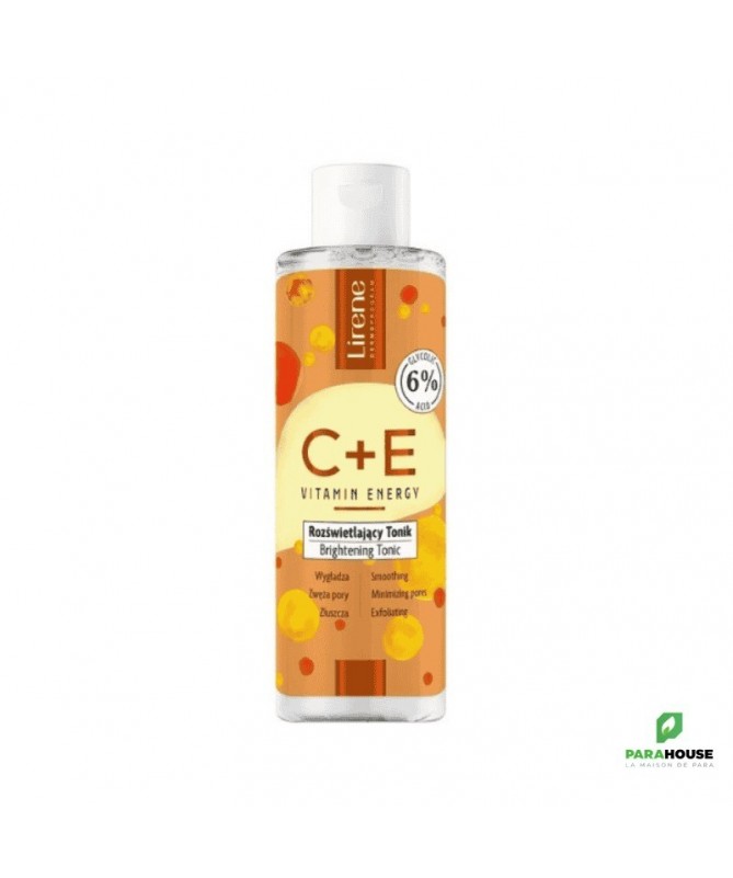 Description :Lirene C+E Vitamin Energy - Tonique ExfoliantLe Tonique Exfoliant Vitamine Energie Lirene C+E est un soin revitalisant pour la peau, enrichi en vitamines C et E, qui donne énergie et luminosité au visage. Grâce à sa délicate action exfoliante, il élimine les cellules mortes et les impuretés, favorisant le renouvellement cellulaire et améliorant la texture de la peau. Idéal pour ceux qui veulent une peau lisse, éclatante et d’apparence saine.Pourquoi choisir le tonique exfoliant énergétique vitaminé Lirene C+E ?Vitamine C : Éclaircit et revitalise la peau, lui donnant un aspect frais et éclatant.Vitamine E : Protège la peau des radicaux libres et combat le vieillissement cutané.Action exfoliante douce : Élimine les cellules mortes, améliorant la texture de la peau et favorisant le renouvellement cellulaire.Effet énergisant : Redonne de la vitalité aux peaux fatiguées et ternes.Conseils D'utilisation :Appliquez le tonique sur un coton et frottez-le doucement sur le visage et le cou nettoyés. Utiliser matin et soir pour obtenir une peau éclatante et lisse. Évitez tout contact avec le contour des yeux.Composition :Aqua (eau), acide glycolique, hydroxyde de sodium, glycérine, 1, 2-hexanediol, tétraisopalmitate d'ascorbyle, acide 3-O-éthyl ascorbique, lécithine, extrait de fleur de Lonicera Caprifolium (chèvrefeuille), extrait de fleur de Lonicera Japonica (chèvrefeuille), tocophérol, Graine d'Helianthus Annuus (tournesol) Huile, décyl glucoside, chlorphénésine, acide benzoïque, acide déhydroacétique, parfum (parfum), huile d'écorce de Citrus Aurantium, limonène, hexyl cinnamal, tétraméthyl acétyloctahydronaphtalènes, acétate de linalyle.