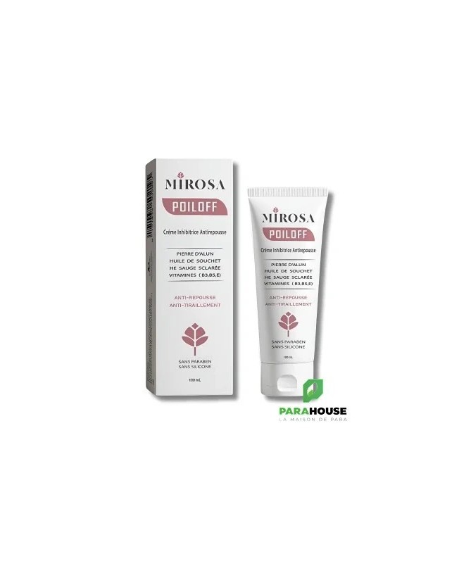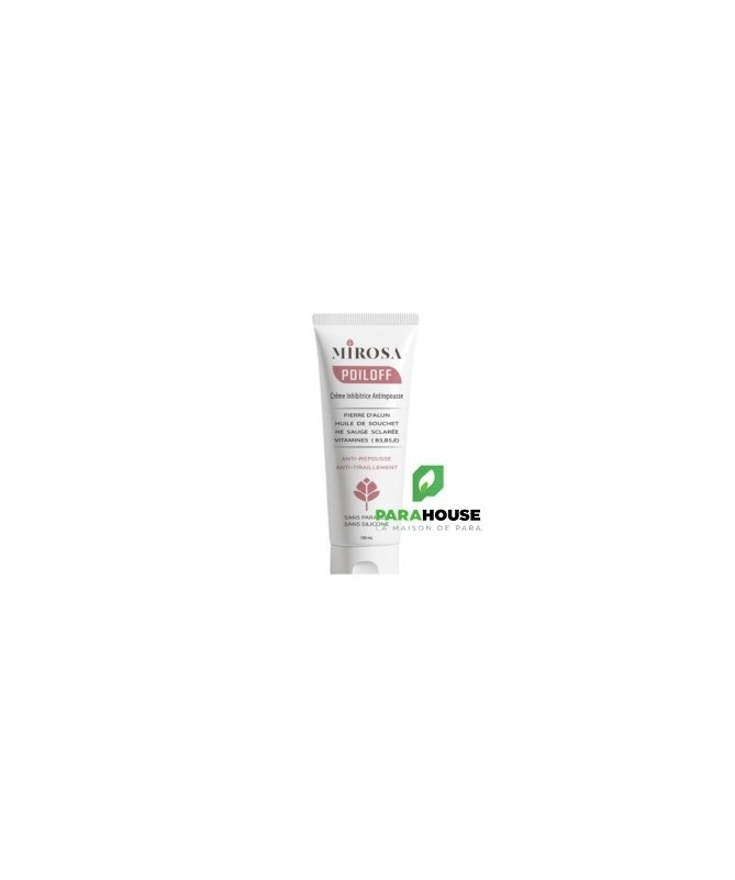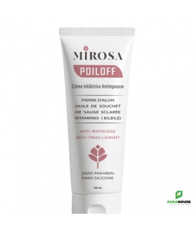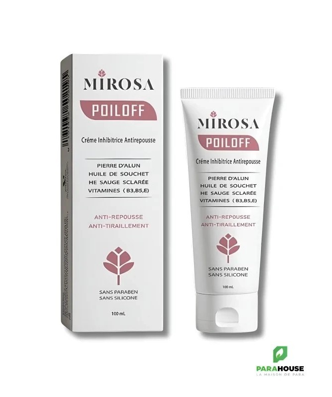 Description :Soin post‑épilation pour retarder la repousse du poilCette crème innovante de la gamme MIROSA est conçue pour ralentir la repousse des poils après l’épilation ou le rasage. Elle réduit visiblement la repousse pour une peau douce et lisse plus longtemps, tout en apaisant les zones traitéesPrincipaux avantages :Repousse retardée : formule anti‑repousse efficace après chaqueépilation .Peau apaisée : diminue les tiraillements et rougeurs post-épilation.Texture veloutée : pénètre facilement sans laisser de film gras.Formule douce : sans parabène, adaptée aux zones délicates .Convient pour :Visage, aisselles, maillot, jambes…Tous les types de peau, même sensibles.Conseils D’utilisation :Nettoyez soigneusement la zone après épilation ou rasage.Appliquez une fine couche de crème en massant doucement.À laisser poser, sans rincer, jusqu’à absorption complète.Utilisez régulièrement pour prolonger les effets.