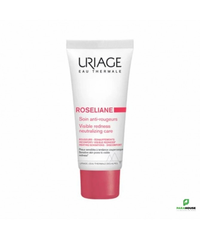 URIAGE ROSELIANE Soin Anti Rougeurs 40ML Uriage roseliane creme anti rougeurs diminue et aide à prévenir les rougeurs. Composé d'actifs dermatologiques reconnus, l'algue rouge, les céramides et la vitamine E, il apaise immédiatement et durablement les sensations d’échauffement et de tiraillements. Efficacité immédiate. L’association du complexe TLR2-Regul et du complexe SK5R, (Specific-Kallikrein-5-Regulator), régulent l’activité de la Kallikréine-5, protéase responsable de l’inflammation et des problèmes vasculaires, pour un effet apaisant performant. Texture légère aux nacres vertes neutralisantes. Creme uriage roseliane : Répare et renforce la barrière cutanée: Riche en Eau Thermale d'Uriage aux propriétés hydratantes et apaisantes Renforce la paroi vasculaire: Les extraits d’algues rouges renforcent la paroi des vaisseaux sanguins pour limiter leur apparition sur la surface de la peau. Restaure et fortifie la barrière immunologique: L’association du complexe TLR2-Regul et du complexe SK5R, (Specific-Kallikrein-5-Regulator), nouveau brevet déposé des Laboratoires Dermatologiques d’Uriage, régulent l’activité de la Kallikréine-5, protéase responsable de l’inflammation et des problèmes vasculaires, pour un effet apaisant performant. Conseils d'utilisation : Il est preferable d'appliquer creme uriage roseliane quotidiennement sur l’ensemble du visage. Éviter le contour des yeux. Composition : AQUA (WATER, EAU) — SQUALANE — DICAPRYLYL ETHER — BUTYROSPERMUM PARKII (SHEA) BUTTER — DIGLYCERIN — PROPANEDIOL — CETYL ALCOHOL — PENTAERYTHRITYL DISTEARATE — 1,2-HEXANEDIOL — STEARETH-2 — STEARETH-21 — DIMETHICONE — GLYCERYL STEARATE — PEG-100 STEARATE — SODIUM POLYACRYLATE — PARFUM (FRAGRANCE) — CI 77891 (TITANIUM DIOXIDE) — CHLORPHENESIN — MICA — ACRYLATES/C10-30 ALKYL ACRYLATE CROSSPOLYMER — TOCOPHERYLACETATE — XANTHAN GUM — o-CYMEN-5-OL — MALTODEXTRIN — ASIATICOSIDE — ASPARAGOPSIS ARMATA EXTRACT — PANAX GINSENG ROOT EXTRACT — POLYGLYCERYL-10 STEARATE — SODIUM BENZOATE — POTASSIUM SORBATE — ASCOPHYLLUM NODOSUM EXTRACT — TRIETHYL CITRATE — POLYGLYCERYL-6 BEHENATE — CI 77491 (IRON OXIDES) — SILICA — BEHENIC ACID — CERAMIDE NP — CETEARYL ALCOHOL — CHOLESTEROL — LACTIC ACID — CERAMIDE NS — TOCOPHEROL — CERAMIDE EOP — CERAMIDE AP — SODIUM CETEARYL SULFATE — SODIUM HYDROXIDE — GLYCERIN NB : Hypoallergénique, Non comédogène