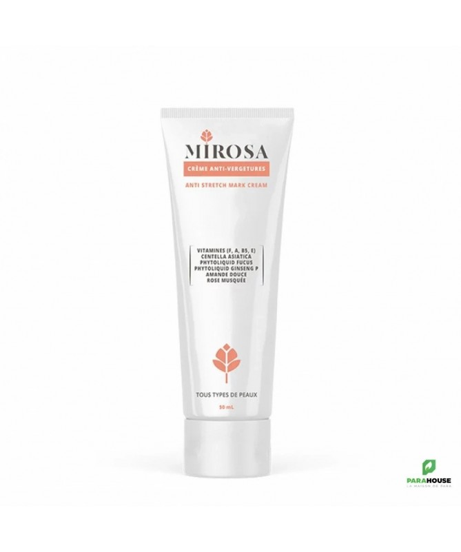 MIROSA CREME ANTI VERGETURES 50ML MIROSA CREME ANTI VERGETURES contribue à prévenir les vergetures et à réduire leur apparence lors de variations de poids (en particulier pendant la grossesse et la puberté). Sa formule associe des actifs qui : Favorisent la prévention et la réduction des vergetures. Améliorent l’élasticité et la fermeté de la peau. Aident à unifier la couleur de la peau. Composition : AQUA (purified water), PERSEA GRATISSIMA OIL, PRUNUS AMYGDALUS DULCIS OIL, TRITICUM VULGARE GERM OIL, ROSA CANINA SEED OIL, CENTELLA ASIATICA EXTRACT, PHYTOLIQUID FUCUS, PHYTOLIQUID GINSENG P, LINOLEIC ACID (vitamine F), RETINOL, PANTHENOL, DIMETHICONOL, GLYCERYL STEARATE, XANTHAN GUM, TOCOPHEROL, sodium benzoate, potassium sorbate. Conseils d'utilisation : MIROSA CREME ANTI VERGETURES s'utilise matin et soir sur une peau propre et sèche. Appliquer par légers massages circulaires en insistant sur les zones soumises aux distensions (cuisses, hanches, ventre et seins). Eviter le contact avec les yeux. Usage externe.