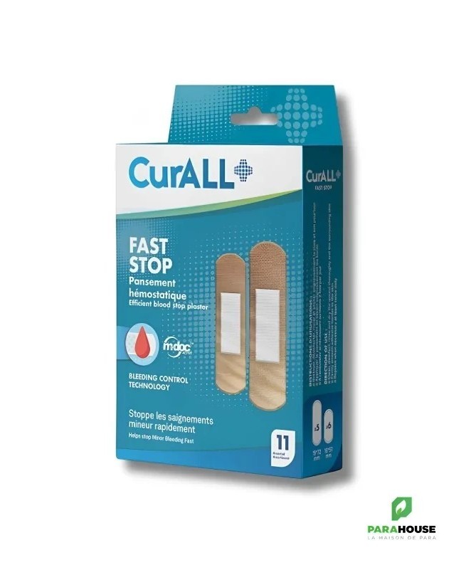 LeCURALL Fast Stopest unpansement hémostatiquede nouvelle génération, développé grâce à latechnologie M-doc, qui permet un arrêt rapide et efficace de l’écoulement du sang. Doté d’unecompresse non-collante, il protège la plaie tout en facilitant le retrait sans douleur. Sonsupport non tissé, flexible et hypoallergéniqueassure un confort optimal, même pour les peaux sensibles, tout en s’adaptant parfaitement aux mouvements du corps.