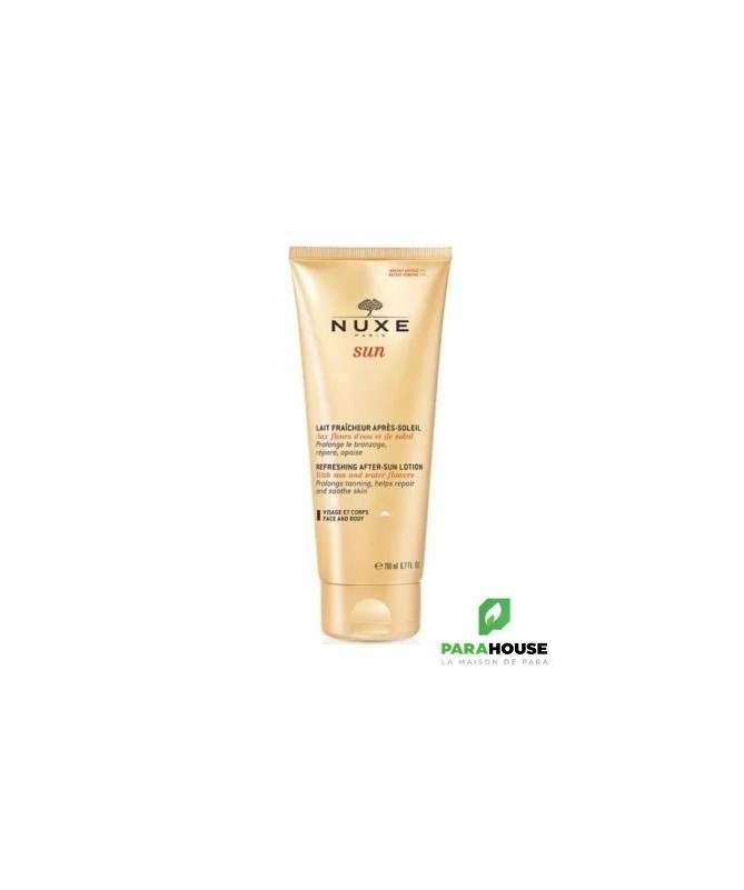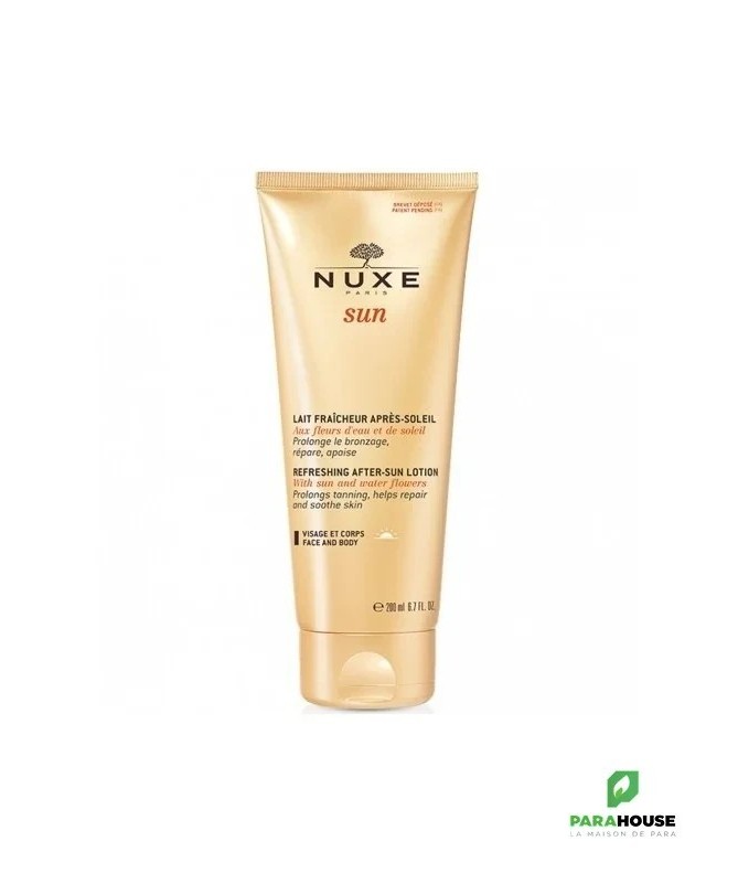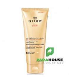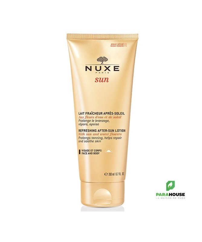 NUXE Sun Lait Fraîcheur Après Soleil Visage et Corps 200ML NUXE Sun Lait Fraîcheur Après Soleil rafraîchit instantanément la peau échauffée après l'exposition. Son incroyable fraîcheur répare, réconforte et perfectionne votre peau tout en prolongeant votre bronzage pendant deux semaines. Son parfum est une invitation irrésistible à profiter de l'été aux notes d'Orange douce, de Tiaré et de Vanille est une irrésistible invitation à profiter de l'été. Composition : L'Extrait de Graines de Caroube : active et prolonge le bronzage. Des extraits d'origine naturelle de Riz, Romarin et de la vitamine E : réputés pour leur pouvoir anti-oxydant, ils contribuent à la protection cellulaire anti-âge de la peau. Un extrait de Jacinthe d’Eau (brevet FR) et de la Glycérine Végétale : préviennent la déshydratation. INGREDIENTS : AQUA/WATER, DIMETHICONE, HELIANTHUS ANNUUS (SUNFLOWER) SEED OIL, DICAPRYLYL CARBONATE, GLYCERIN, GLYCOL PALMITATE, HYDROGENATED COCONUT OIL, ARACHIDYL ALCOHOL, HYDROXYSTEARIC/LINOLENIC/OLEIC POLYGLYCERIDES, PARFUM/FRAGRANCE, TOCOPHEROL, BEHENYL ALCOHOL, CAPRYLOYL GLYCINE, CARBOMER, SODIUM STEAROYL GLUTAMATE, TOCOPHERYL ACETATE, SIMMONDSIA CHINENSIS (JOJOBA) SEED OIL, ARACHIDYL GLUCOSIDE, CITRIC ACID, ETHYLHEXYLGLYCERIN, SODIUM HYDROXIDE, DIMETHICONOL, DEHYDROACETIC ACID, MICA, INOSITOL, TETRASODIUM EDTA, CI 77891/TITANIUM DIOXIDE, EICHHORNIA CRASSIPES EXTRACT, ETHYL FERULATE, FAGRAEA BERTEROANA FLOWER EXTRACT, ROSMARINUS OFFICINALIS (ROSEMARY) LEAF EXTRACT, BENZYL SALICYLATE, LIMONENE, LINALOOL, GERANIOL, CITRONELLOL, COUMARIN [N2604/B] Conseils d'utilisation : Il est conseillé d'appliquer NUXE Apres Soleil généreusement nuxe lait fraicheur apres soleil chaque soir après l’exposition au soleil, puis au retour des vacances.