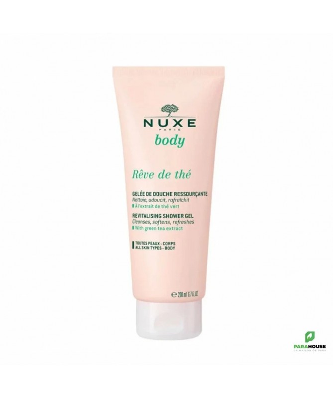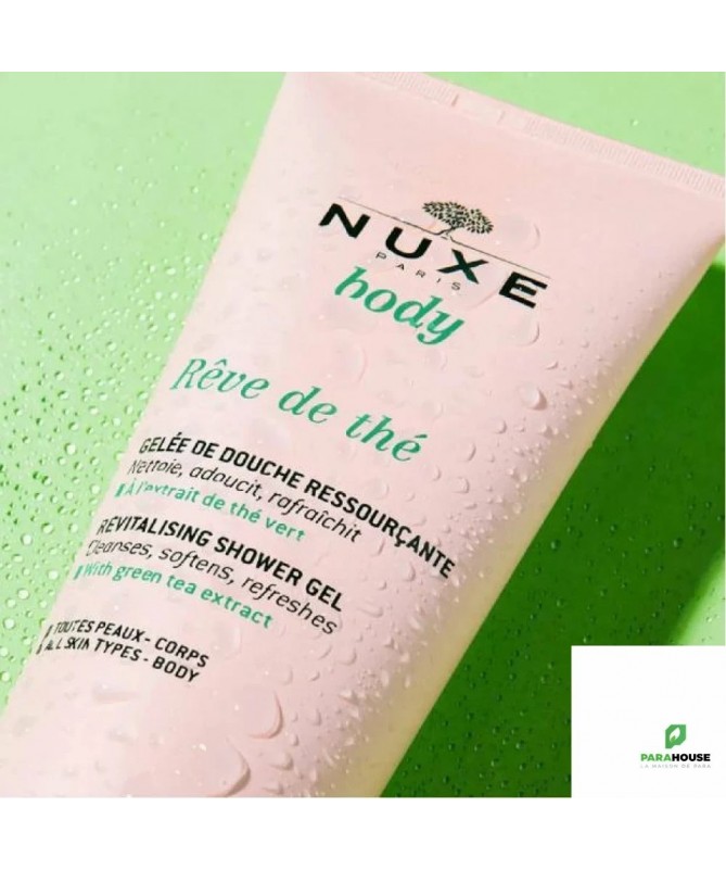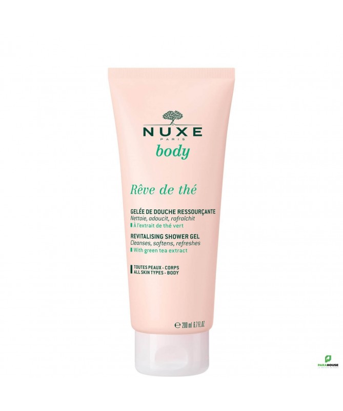 NUXE Reve de The Gelee de Douche 200ML NUXE Body Reve de The Gelee de Douche est un gel douche luxueux qui aide la peau à etre propre, confortable et douce tout en en délicatesse. La texture de NUXE Gelée de Douche, fondante à l’irrésistible parfum de Thé vert se transforme en une fine mousse rinçable facilement.Un moment hors du temps pour le corps et l’esprit. Peau nettoyée en douceur pour 95% des femmes dès l'application Peau douce pour 100% des femmes dès l'application Peau fraiche pour 95% des femmes dès l'application Composition : INGREDIENTS : AQUA/WATER, CAPRYLYL/CAPRYL GLUCOSIDE, COCAMIDOPROPYL BETAINE, GLYCERIN, SODIUM COCOYL GLUTAMATE, PARFUM/FRAGRANCE, ACRYLATES/C10-30 ALKYL ACRYLATE CROSSPOLYMER, SODIUM BENZOATE, PROPYLENE GLYCOL, TOCOPHERYL ACETATE, SODIUM HYDROXIDE, CAMELLIA SINENSIS FLOWER EXTRACT, LIMONENE, LINALOOL, ALPHA-ISOMETHYL IONONE, GERANIOL 95% d'ingrédients d'origine naturelle Conseils d'utilisation : Il est conseillé d'appliquer une noix de la gelée de douche NUXE matin et/ou soir sur votre peau humide, profitez de sa texture fondante et de sa mousse délicieuse, puis rincez. En cas de contact avec les yeux, rincez