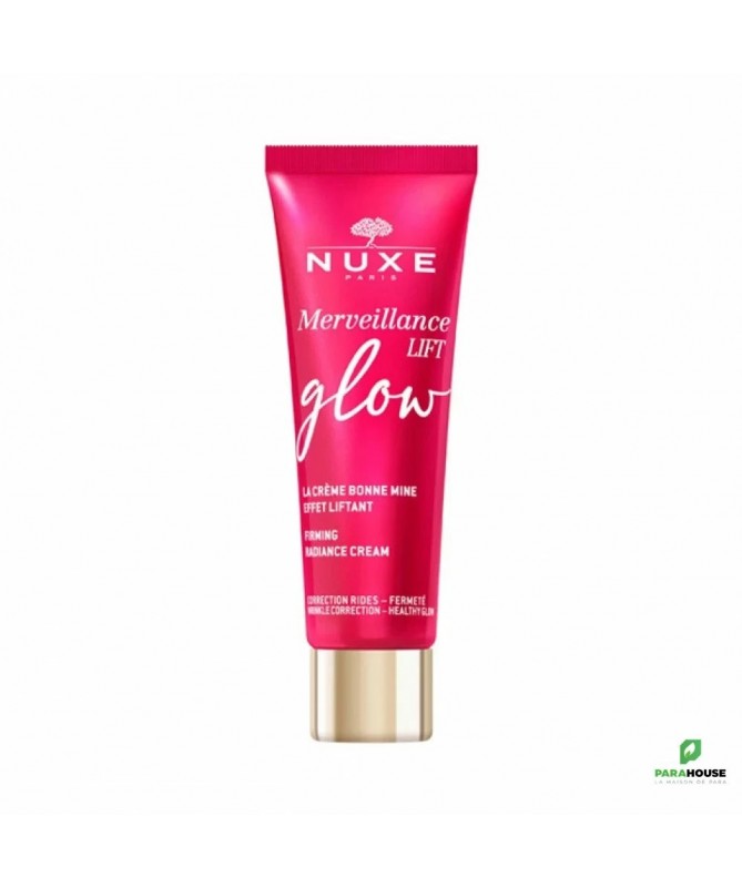NUXE MERVEILLANCE LIFT GLOW CREME BONNE MINE 50ML NUXE MERVEILLANCE LIFT GLOW CREME BONNE MINE donne un effet tenseur et bonne mine instanne. Cette crème,NUXE MERVEILLANCE LIFT GLOW , liftante infusée d'huile de Micro-Algue ultra-corrective est subtilement colorée grâce à un extrait végétal de tomate. Dès l'application, la peau est lissée, lumineuse et comme défatiguée pour 100% des femmes (2). Jour après jour les rides sont corrigées, la peau est plus ferme. Plus belle, même sans maquillage, elle paraît visiblement plus jeune. Idéale pour tous les types de peaux et toutes les carnations grâce à sa texture fondante à la teinte universelle. Une efficacité anti-âge et sublimatrice 2-en-1 alliée à un plaisir ultime grâce à son parfum aux délicats accords floraux et musqués. Résultats : Peau lumineuse, comme défatiguée pour 100% des femmes dès l'application Action [lift + glow] efficace pour 100% des femmes dès l'application Composition : INGREDIENTS : AQUA/WATER, GLYCERIN, COCO-CAPRYLATE/CAPRATE, SQUALANE, BEHENYL ALCOHOL, ARACHIDYL ALCOHOL, PARFUM/FRAGRANCE, BUTYROSPERMUM PARKII (SHEA) BUTTER, SODIUM POLYACRYLATE, SODIUM STEAROYL GLUTAMATE, GLYCERYL CAPRYLATE, HYDROXYACETOPHENONE, ARACHIDYL GLUCOSIDE, XANTHAN GUM, CITRIC ACID, SOLANUM LYCOPERSICUM (TOMATO) FRUIT EXTRACT, CAPRYLIC/CAPRIC TRIGLYCERIDE, MICA, CI 77491/IRON OXIDES, HELIANTHUS ANNUUS (SUNFLOWER) SEED OIL, ALTHAEA OFFICINALIS ROOT EXTRACT, UNDARIA PINNATIFIDA EXTRACT, BENZYL ALCOHOL, CHLORELLA VULGARIS EXTRACT, DEHYDROACETIC ACID, ROSMARINUS OFFICINALIS (ROSEMARY) LEAF EXTRACT, LINALOOL, ALPHA-ISOMETHYL IONONE, GERANIOL, CITRONELLOL, LIMONENE [N4706/A] Conseils d'utilisation : Prélevez une bonne noisette de soin, faites-la chauffer entre vos mains, puis appliquez-la sur votre visage avec vos deux mains à plat, toujours du centre vers l'extérieur (en évitant le contour des yeux). N’hésitez pas à en faire profiter aussi votre cou et votre décolleté. Finissez par de légers tapotements (du bout des doigts) sur l'ensemble du visage pour réveiller l’éclat de votre teint. Le matin, idéalement après le sérum.