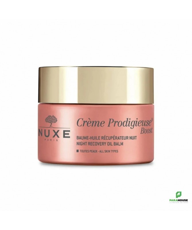 NUXE Creme Prodigieuse Boost Baume huile recuperateur nuit NUXE Crème Prodigieuse Boost Baume huile récupérateur nuit au complexe antioxydant à la fleur de jasmin aide la peau à récupérer pendant la nuit des effets néfastes de votre vie quotidienne (stress, fatigue, pollution...), tout en respectant l'équilibre naturel de votre peau. Sa texture ultra-cocooning infusée d'huile de Macadamia enveloppe la peau d'un cocon de douceur sans fini gras. Au réveil, les traits sont détendus et le teint est frais. La peau retrouve toute son énergie pour affronter une nouvelle journée. Composition : Principaux actifs d'origine naturelle : Fleur de Jasmin, fleur de Calendula, Sucre cellulaire, huile de Macadamia, extrait de fleur de Nopal. INGREDIENTS : AQUA/WATER, DICAPRYLYL ETHER, ALCOHOL DENAT., GLYCERIN, SQUALANE, DIMETHICONE, MACADAMIA INTEGRIFOLIA SEED OIL, HYDROXYETHYL ACRYLATE/SODIUM ACRYLOYLDIMETHYL TAURATE COPOLYMER, OCTYLDODECANOL, PARFUM/FRAGRANCE, PHENOXYETHANOL, TOCOPHEROL, ETHYLHEXYLGLYCERIN, ACRYLATES/C10-30 ALKYL ACRYLATE CROSSPOLYMER, RIBOSE, SODIUM GLUCONATE, OPUNTIA COCCINELLIFERA FLOWER EXTRACT, BUTYLENE GLYCOL, SODIUM STEAROYL GLUTAMATE, XANTHAN GUM, POLYSORBATE 60, SORBITAN ISOSTEARATE, PENTYLENE GLYCOL, JASMINUM OFFICINALE (JASMINE) FLOWER EXTRACT, FAEX EXTRACT/YEAST EXTRACT, SODIUM HYDROXIDE, BIOSACCHARIDE GUM-1, MICA, CI 77491/IRON OXIDES, CALENDULA OFFICINALIS FLOWER EXTRACT, BENZYL SALICYLATE, LINALOOL, CITRONELLOL, ALPHA-ISOMETHYL IONONE, GERANIOL [N3902/A] CONSEILS D'UTILISATION Il est recommandé d'Appliquer nuxe crème prodigieuse boost nuit le soir sur le visage, le cou et le décolleté, après le Concentré préparateur énergisant.