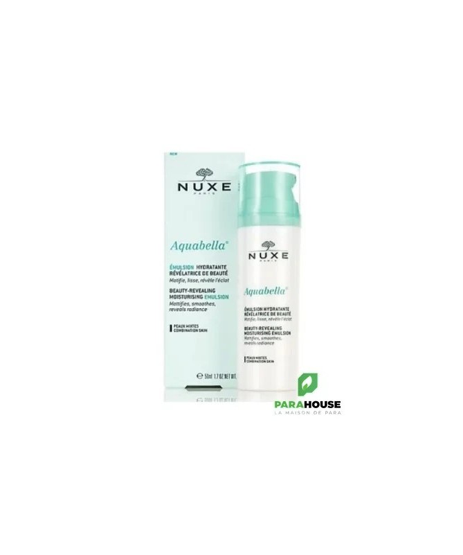 Découvrez l'émulsion matifiante NUXE AQUABELLA, un soin hydratant essentiel pour les peaux mixtes à grasses. Avec sa texture légère et fluide, cette émulsion pénètre rapidement, laissant votre peau douce et parfaitement matifiée. Formulée à base d'ingrédients naturels, elle aide à réguler l'excès de sébum tout en offrant une hydratation optimale. Ce soin innovant est idéal pour les citadines en quête d'un teint frais et éclatant tout au long de la journée.NUXE AQUABELLA EMULSION MATIFIANTE ne se contente pas de matifier, elle purifie également la peau, réduisant l'apparence des pores et luttant contre les imperfections. Enrichie en eau florale de rose et en extraits de plantes, cette émulsion procure une sensation de légèreté et de bien-être. Appliquez-la chaque matin et/ou soir sur une peau propre pour un effet optimal. Offrez à votre peau le meilleur de la nature avec NUXE, une marque reconnue pour ses produits efficaces et luxueux.Composition : Aqua (Water), Glycerin, Ethylhexyl Stearate, Propanediol, Caprylic/Capric Triglyceride, etc.CompositionFormule INCI : Aqua/water, glycerin, prunus amygdalus dulcis (sweet almond) oil, decyl oleate, hydrogenated coconut oil, arachidyl alcohol, parfum/fragrance, dimethicone, behenyl alcohol, hydroxyethyl urea, caprylic/capric triglyceride, mica, tocopherol, arachidyl glucoside, capryloyl glycine, silica, phenoxyethanol, polyacrylate crosspolymer-6, citric acid, ethylhexylglycerin, sodium hydroxide, acrylates/c10-30 alkyl acrylate crosspolymer, sodium stearoyl glutamate, dimethicone crosspolymer, avena sativa (oat) kernel extract, dehydroacetic acid, sodium gluconate, xanthan gum, propanediol, lens esculenta (lentil) seed extract, ammonium lactate, tropaeolum majus flower/leaf/stem extract, sodium benzoate, nymphaea alba flower extract, linalool, benzyl salicylate, geraniol, citronellol, citral