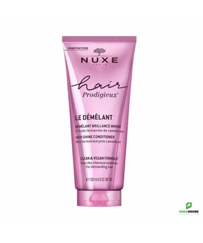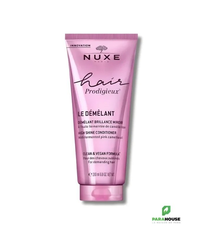 Nuxe Hair Prodigieux Le Demelant Brillance Miroir 200ML Nuxe Hair Prodigieux Le Demelant démêle instantanément et parfume délicatement les cheveux. Sa formule sans silicone nourrit intensément la fibre capillaire. Vos cheveux sont éclatants de brillance, leur toucher soyeux, addictif. Dès la 1ère application, les cheveux sont faciles à démêler pour 90% des utilisatrices. Ils sont hydratés, soyeux et doux pour 90% des utilisatrices. Après 12 applications, leur brillance est encore plus intense (+ 40%). Sa texture baume à la fragrance mythique de l'Huile Prodigieuse® enveloppe vos cheveux d'un parfum envoûtant pour un rituel sensoriel inouï. Résultats : Cheveux hydratés pour 90% des utilisatrices dès la 1ère application Cheveux soyeux pour 90% des utilisatrices dès la 1ère application Cheveux doux pour 90% des utilisatrices dès la 1ère application Composition : INGREDIENTS : AQUA/WATER, BEHENAMIDOPROPYL DIMETHYLAMINE, STEARYL ALCOHOL, CETYL ALCOHOL, PARFUM/FRAGRANCE, CAMELLIA JAPONICA SEED OIL, HYDROXYPROPYL STARCH PHOSPHATE, CITRIC ACID, PANTHENOL, FRUCTOOLIGOSACCHARIDES, BEHENYL/STEARYL AMINOPROPANEDIOL ESTERS, BENZOIC ACID, CARAMEL, INULIN, CANDIDA BOMBICOLA/GLUCOSE/METHYL RAPESEEDATE FERMENT, PANTOLACTONE, LINALOOL, CITRONELLOL, LIMONENE, GERANIOL [N5403/A]. Conseils d'utilisation : Appliquez le démêlant Hair Prodigieux sur vos cheveux humides et essorés en insistant sur les longueurs et les pointes. Laissez poser 1 minute puis rincez. Rincez en cas de contact avec les yeux.