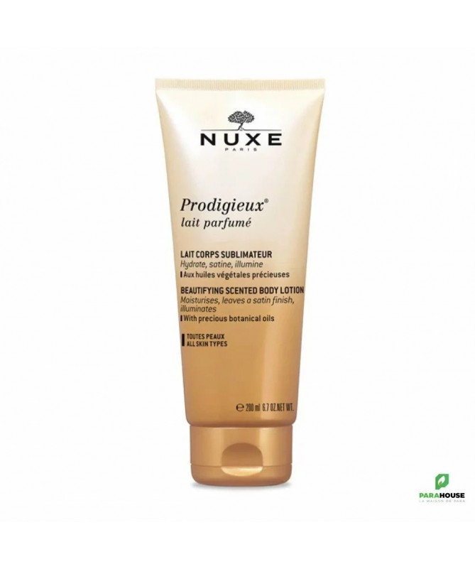 Nuxe Prodigieux Lait Corps Sublimateur Parfume 200ML Nuxe Prodigieux Lait Corps Parfume vous offre une texture ultra légère et satinée qui pénètre parfaitement et le purfum exceptionnellement sublime de l'Huile Progigieuse précieuse. Lait prodigieux nuxe permet de laisser la peau souple et douce et nourrit votre épiderme. Il permet aussi d'illuminer votre peau et la rend plus belle et plus lisse. Ce soin est idéal pour toutes les peaux Composition: Parfum mythique de l'Huile prodigieuse® (notes de Fleur d'Oranger, Magnolia et Vanille). Composants d'origine naturelle : les Huiles Végétales Précieuses de Camélia, Macadamia, Noisette et Bourrache. 91.7 % du total des ingrédients sont d'origine naturelle SODIUM HYDROXIDE, CARBOMER, DIMETHICONOL, CAMELLIA OLEIFERA SEED OIL AQUA/WATER, GLYCERIN, COCO-CAPRYLATE/CAPRATE, DIMETHICONE, HYDROGENATED COCONUT OIL, MACADAMIA INTEGRIFOLIA SEED OIL, BEHENYL ALCOHOL, PARFUM/FRAGRANCE, HYDROXYETHYL UREA, ARACHIDYL ALCOHOL, COCOS NUCIFERA (COCONUT) OIL, COPERNICIA CERIFERA CERA/COPERNICIA CERIFERA (CARNAUBA) WAX, HYDROXYSTEARIC/LINOLENIC/OLEIC POLYGLYCERIDES, SILICA, HYDROXYETHYL ACRYLATE/SODIUM ACRYLOYLDIMETHYL TAURATE COPOLYMER, TOCOPHEROL, CAPRYLOYL GLYCINE, PRUNUS AMYGDALUS DULCIS (SWEET ALMOND) OIL, CORYLUS AVELLANA (HAZEL) SEED OIL, ARACHIDYL GLUCOSIDE, CITRIC ACID, ETHYLHEXYLGLYCERIN, DEHYDROACETIC ACID, SODIUM GLUCONATE, SODIUM STEAROYL GLUTAMATE, MICA, CI 77891/TITANIUM DIOXIDE, AMMONIUM LACTATE, POLYSORBATE 60, SORBITAN ISOSTEARATE, ARGANIA SPINOSA KERNEL OIL, BORAGO OFFICINALIS SEED OIL, BIOSACCHARIDE GUM-1, SODIUM LEVULINATE, GLYCERYL CAPRYLATE, SODIUM ANISATE, BENZYL SALICYLATE, LINALOOL, LIMONENE, CITRONELLOL, GERANIOL, BENZYL ALCOHOL [N2211/B]. Conseils d'utilisation: Comptez 6 noisettes (ou pressions) par jour pour l'ensemble du corps. Massez de préférence les jambes en mouvements ascendants, en allant du pied vers les hanches. Massez ensuite les bras par lissage, des mains vers la poitrine. Pour le ventre, privilégiez le massage circulaire dans le sens des aiguilles d'une montre (favorise la digestion).
