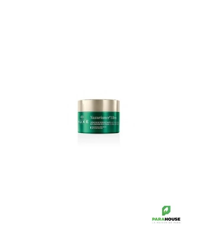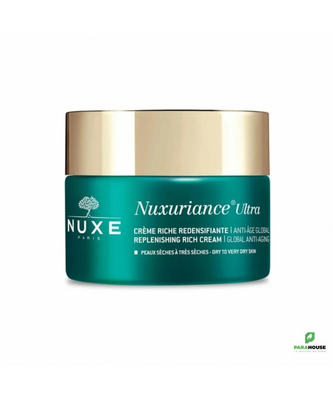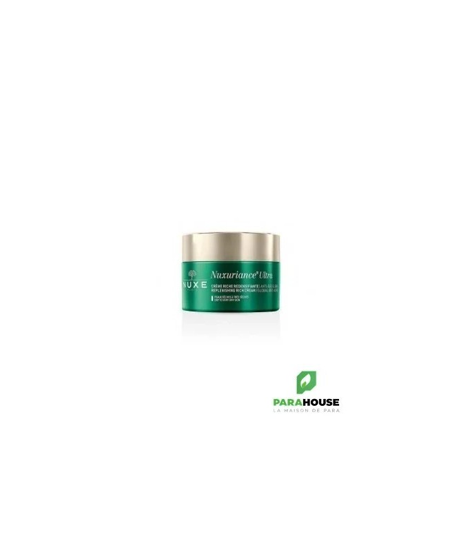 NUXE Nuxuriance Ultra crème riche redensifiante anti age 50ML NUXE Nuxuriance Ultra creme riche redensifiante est une crème riche qui pénètre vite bien dans la peau. Ce soin, spécialement conçu pour les peaux sèches à très sèches, hydrate profondément, redensifie et raffermit la peau en manque de fermeté. La présence de cellules Bi-florales de Safran et Bougainvillier dans NUXE Nuxuriance Ultra creme riche redensifiante joue un role principal dans la regéneration des tissus fragilisés et de retrouver ainsi galbe et tonicité. Composition: Composants d'origine naturelle dont Cellules Bi-Florales® de Safran et Bougainvillier, Limnanthe et extrait de Pétales de Coquelicot Bio. 93.4 % du total des ingrédients sont d'origine naturelle INGREDIENTS : CAPRYLOYL GLYCINE, PHENOXYETHANOL, SODIUM HYDROXIDE, CITRIC ACID, ETHYLHEXYLGLYCERIN, SODIUM STEAROYL GLUTAMATE, DEHYDROACETIC ACID, BOUGAINVILLEA GLABRA LEAF CELL EXTRACT, SODIUM GLUCONATE, XANTHAN GUM, HYALURONIC ACID, AMMONIUM LACTATE, LAUROYL LYSINE, UNDARIA PINNATIFIDA EXTRACT, AQUA/WATER, GLYCERIN, LIMNANTHES ALBA (MEADOWFOAM) SEED OIL, PRUNUS AMYGDALUS DULCIS (SWEET ALMOND) OIL, ARACHIDYL ALCOHOL, GLYCOL PALMITATE, CAPRYLIC/CAPRIC TRIGLYCERIDE, HELIANTHUS ANNUUS (SUNFLOWER) SEED OIL UNSAPONIFIABLES, HYDROGENATED COCONUT OIL, PERSEA GRATISSIMA (AVOCADO) OIL, BEHENYL ALCOHOL, DICAPRYLYL CARBONATE, TALC, TOCOPHEROL, ARACHIDYL GLUCOSIDE, ACRYLATES/C10-30 ALKYL ACRYLATE CROSSPOLYMER, ALTEROMONAS FERMENT EXTRACT, THEOBROMA CACAO (COCOA) LEAF CELL EXTRACT, BENZYL ALCOHOL, PAPAVER RHOEAS PETAL EXTRACT, CROCUS SATIVUS FLOWER EXTRACT, BENZYL SALICYLATE, LINALOOL, COUMARIN, GERANIOL, CITRONELLOL [N3206/B], PARFUM/FRAGRANCE, HYDROXYETHYL UREA, DIMETHICONE. Conseils d'utilisation: Il est preferable de Laver votre visage avant d'appliquer votre crème hydratante Il est conseillé d'appliquer NUXE Nuxuriance Ultra creme riche redensifiante anti age le matin sur le visage et le cou. Placez la quantité de produit nécessaire dans votre main et Faites la pénétrer en effectuant des petits mouvements de lissage Il est préférable d'utiliser la crème après Sérum Nuxuriance ultra.