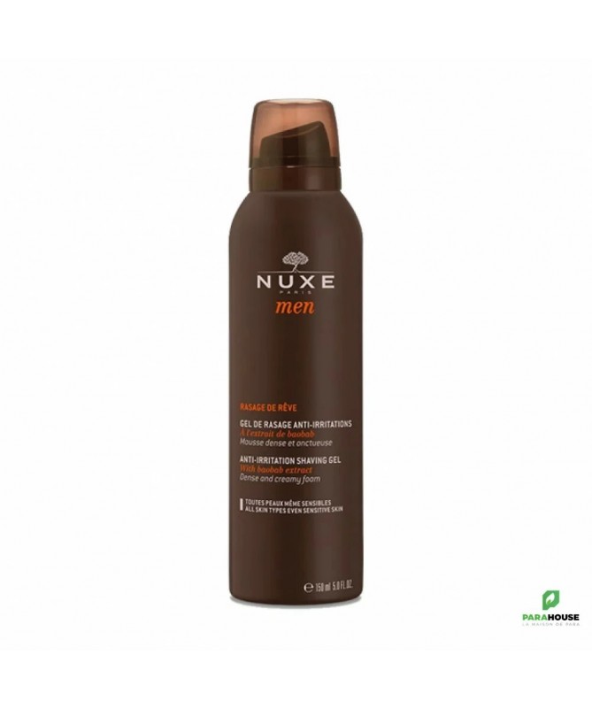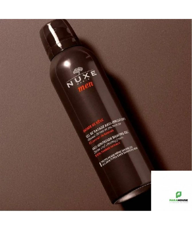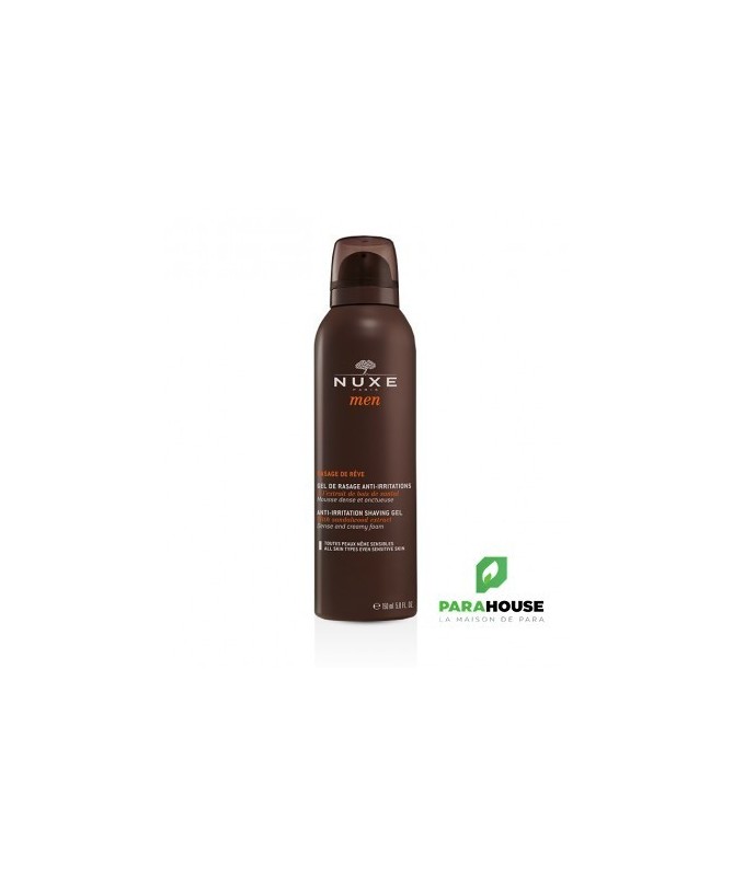 NUXE MEN Rasage de Rêve Gel 150ML Extrait de bois de santal, fraîcheur et finesse qui évoque un instant de grâce. NUXE MEN Rasage de Reve, une mousse à raser en gel, dense et onctueuse, qui permet un rasage facile et précis sans irritations. Un parfum masculin boisé et épicé pour tous les types de peaux même sensibles Découvrez le bonheur du rasage doux et facile. Composition : INGREDIENTS : AQUA/WATER, PALMITIC ACID, TRIETHANOLAMINE, OLETH-20, ISOPENTANE, HYDROGENATED STARCH HYDROLYSATE, GLYCERIN, ISOBUTANE, CAPRYLIC/CAPRIC TRIGLYCERIDE, COCAMIDE MIPA, HYDROXYETHYLCELLULOSE, PHENOXYETHANOL, HYDROGENATED POLYISOBUTENE, HYDROXYETHYL UREA, PARFUM/FRAGRANCE, 1,2-HEXANEDIOL, CAPRYLYL GLYCOL, TOCOPHERYL ACETATE, ALLANTOIN, BISABOLOL, MACADAMIA INTEGRIFOLIA SEED OIL, PEG-14M, HYDROLYZED ADANSONIA DIGITATA EXTRACT, TOCOPHEROL, ETHYLHEXYLGLYCERIN, GLYCINE SOJA (SOYBEAN) OIL, AMMONIUM LACTATE, BIOSACCHARIDE GUM-1, TROPOLONE, DISODIUM PHOSPHATE, POLYSORBATE 60, SILICA, SODIUM PHOSPHATE, CARBOMER, BHT [N1904/G]. 80 % du total des ingrédients sont d'origine naturelle conseils d'utilisation : Il est conseillé d'appliquer une noisette du NUXE MEN gel de rasage homme sur le visage humide après avoir bien agité le flacon. Masser, faire mousser et procéder au rasage. Rincer à l’eau après le rasage.