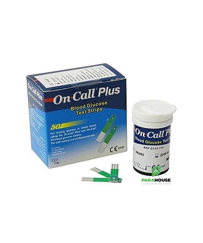 Bandelettes de Test On Call PlusLesbandelettes de test On Call Plussont spécialement conçues pour offrir une application simple et précise du sang, grâce à leur action d'absorption optimisée. Elles permettent de recueillir rapidement une petite goutte de sang, facilitant ainsi le processus de test.Ces bandelettes sont proposées dans un flacon pratique, ce qui permet un stockage facile et hygiénique. Leur coût abordable vous permet de réaliser des tests fréquents pour un suivi de la glycémie constant et fiable, sans vous soucier de la fréquence des remplacements.