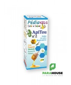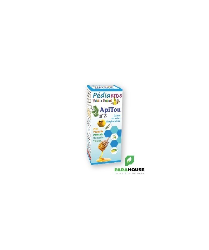 PEDIAKIDS APITOU N°2 TOUX SECHE 150ML Soulagez la toux sèche de votre enfant de manière naturelle avec PEDIAKIDS APITOU N°2 TOUX SÈCHE. Ce sirop doux et apaisant est spécialement formulé pour calmer les voies respiratoires tout en offrant un confort optimal à vos petits. Soulagement efficace de la toux sèche : Grâce à sa formule unique, PEDIAKIDS APITOU N°2 cible les irritations de la gorge et aide à apaiser la toux, permettant ainsi à votre enfant de respirer plus facilement et de retrouver un sommeil paisible. Calme les voies respiratoires : Les extraits naturels de plantes et les ingrédients bienfaisants agissent en synergie pour réduire l’inflammation et favoriser la détente des voies respiratoires. Composition : Extrait sec de Plantin : Connu pour ses propriétés apaisantes sur les voies respiratoires. Extrait sec de Tilleul : Aide à calmer les irritations et favorise la relaxation. Extrait sec de Romarin : Prisé pour ses effets bénéfiques sur la respiration. Miel et Propolis : Offrent un goût agréable tout en apportant des propriétés antiseptiques et anti-inflammatoires. Conseils d'utilisation : 0 à 5 ans : 5ml deux fois par jour. Plus de 5 ans : 10ml deux fois par jour.