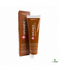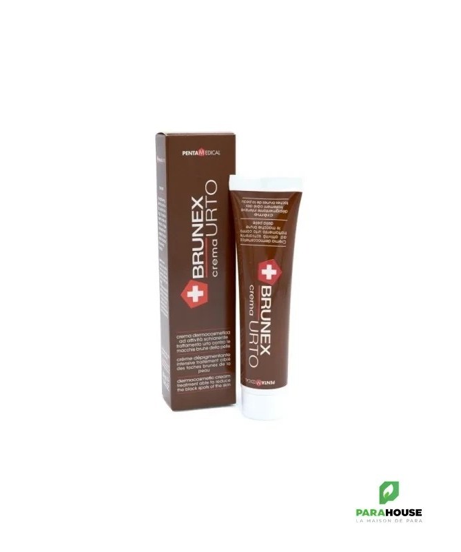 BRUNEX Urto Creme Dépigmentante 30ML Brunex Urto est une crème dépigmentante contre les mélasmas et tâches brunes. Elle contient l'actif dépigmentant, nouvelle génération, l'acide phtalimmido-perssicaproic. Brunex Urto est efficace sans agression de l'épiderme. Les premiers résultats seront visibles après environ 3 semaines. Pour les tâches brunes des mains il faut appliquer 3 fois par jour. Après le traitement d'attaque BRUNEX URTO, il est nécessaire d'utiliser la crème d'entretient dépigmentante BRUNEX pendant 2 mois afin de compléter le traitement. Conseils d'utilisation: IL est conseillé d'Appliquer la crème Brunex Urto le soir avec un léger massage pour accélérer la pénétration. Les premiers résultats sont visibles au courant de la troisième semaine du traitement. Dans les cas des tâches sur les mains. Une application plus fréquente est conseillée