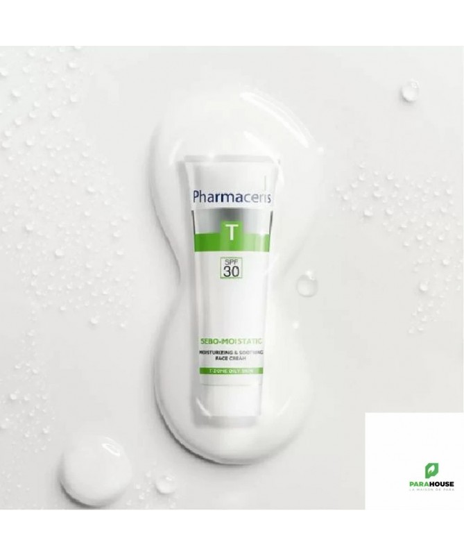 Pharmaceris T SEBO MOISTATIC CREME HYDRATANTE APAISANTE SPF30 La crème pharmaceris T est recommandée pour les peaux à tendance acnéique gravement sèches et irritées à la suite de traitements anti-acnéiques, y compris la pharmacothérapie, et qui nécessitent un haut niveau de protection contre les rayons UV. Pharmaceris T SEBO MOISTATIC CREME hydrate intensément la peau déshydratée grâce à de puissants traitements anti-acnéiques et maintient son équilibre hydrique pendant longtemps. Grâce à l'effet global des molécules hygroscopiques et de l'Hydructor, la crème pénètre dans les couches profondes de la peau et retient et retient l'humidité dans l'épiderme pendant une longue période. Il réduit l'inconfort et la sensation de peau tendue. Pharmaceris T SEBO MOISTATIC CREME contient un complexe prébiotique et de l’allantoïne qui apaise et soulage les irritations et stimule la croissance de la microflore physiologique protectrice afin de réduire l’hypersensibilité de la peau aux agresseurs environnementaux. Des agents antibactériens (extraits d'écorce de saule et de sauge) régulent le processus d'exfoliation de l'épiderme et préviennent les nouvelles éruptions d'acné. La crème contient également un filtre SPF 30 qui minimise efficacement les risques d’irritation cutanée et d’hyperpigmentation liés aux réactions photoallergiques et phototoxiques. La crème absorbe rapidement et ne pas obstruer les pores de la peau. Efficacité : 96% hydrate intensément et durablement la peau 85% restaure le confort cutané Composition : HYDRUCTOR : pénètre dans les couches profondes de la peau et retient et retient l'humidité dans l'épiderme pour garder la peau bien hydratée et confortable. Le complexe prébiotique : stimule la croissance de la microflore cutanée protectrice physiologique afin de réduire l’hypersensibilité de la peau aux agresseurs environnementaux. Allantoïne : apaise les irritations; apporte un soulagement et favorise la régénération de l'épiderme. L'extrait de saule blanc : possède des propriétés antibactériennes et un effet apaisant sur la peau. Il possède des propriétés antiseptiques et régule le processus d’exfoliation des cellules mortes de la peau afin de prévenir de nouvelles imperfections. L'extrait de sauge a des propriétés antibactériennes et antiacnéiques 171024 Ingrédients : Aqua (eau), méthoxycinnamate d'éthylhexyle, benzoate d'alkyle en C12-15, benzoate de diéthylamino hydroxybenzoyl hexyle, pentylène glycol, glycérine, cyclopentasiloxane, alcool cétéarylique, éthylhexyl triazone, cyclohexasiloxane, alcool cétylique, stéarate de PEG-100, méthylène bis-benzotriazolyl tétraméthylbutylphénol (nano), polyacrylate de sodium, glucoside de cétéaryle, diméthicone, inuline, hydroxyéthylurée, parfum (fragrance), propylène glycol, extrait de fleur de Lonicera caprifolium (chèvrefeuille), allantoïne, acide mandélique, polysilicone-11, glucoside de décyle, oligosaccharide d'alpha-glucane, extrait de fleur de Lonicera japonica (chèvrefeuille), lactate d'ammonium, BHA, extrait de Salvia Officinalis (sauge), glucose, extrait d'écorce de Salix Alba (saule), gomme xanthane, sorbate de potassium, benzoate de sodium haute tolérance et efficacité testé dermatologiquement Conseils d'utilisation : Il est recommandé d'appliquer Pharmaceris T SEBO-MOISTATIC CRÈME sur la peau du visage après le nettoyage avec les produits de la gamme T Pharmaceris. Évitez le contour des yeux. Il est preferable d'utiliser tous les jours le matin. C'est parfait comme base de maquillage.