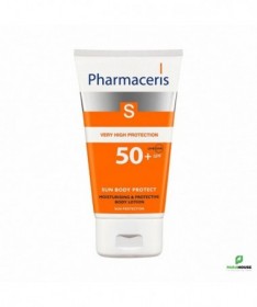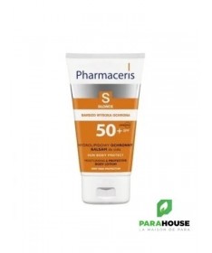 Pharmaceris S Body Lotion SPF50+ 150ML Pharmaceris S Body Lotion est destinée pour les peaux délicates sensibles qui exigent une haute protection solaire. L’utilisation de Pharmaceris S SUN BODY LOTION également recommandée par les spécialistes pendant le traitement dermatologique et les procédures de médecine esthétique pour protéger la peau contre les décoloration. Pharmaceris S sun body protect Body Lotion utilise un système spécial de filtres photostables UVA et UVB, avec un double mécanisme d’action anti-UV (réfléchissant et absorbant les rayons du soleil) pour assurer une protection plus efficace et très élevée contre une exposition intense au soleil et ses effets indésirables. Pharmaceris S SUN BODY PROTECT offre une protection anti-UV supérieure à 98% et minimise le risque des lésions pigmentaires et de décoloration. Le produit complète les déficits de lipides. Il hydrate profondément et nourrit la peau en créant une couche protectrice qui protège l’épiderme contre le dessèchement excessif. Pharmaceris S SUN Lotion solaire spf 50+ est résistante à l’eau adaptée aux besoins des personnes actives et s’absorbe rapidement et ne laisse pas de couche grasse sur la peau. Composition : Vitamine E : dite vitamine de jeunesse à effet antioxydant fort, protège contre des radicaux libres et des facteurs externes indésirables. Elle hydrate et accélère le processus de régénération et de reconstruction de la peau. Beurre de karité : imite la structure naturelle lipidique de la peau, apaise et nourrit l’épiderme. Allantoïne : apaise les irritations, soigne et régénère l’épiderme. Filtres UVA et UVB photostables : réfléchissent et absorbent les rayons du soleil pour fournir une protection efficace et élevée contre l’exposition intense au soleil. HAUTE TOLÉRANCE ET EFFICACITÉ TESTÉ DERMATOLOGIQUEMENT Conseils d'utilisation : Appliquez une quantité appropriée de Pharmaceris S Body Lotion 20-30 minutes avant toute exposition au soleil. Renouvelez l’application toutes les 2 heures et chaque fois après le bain ou la natation.