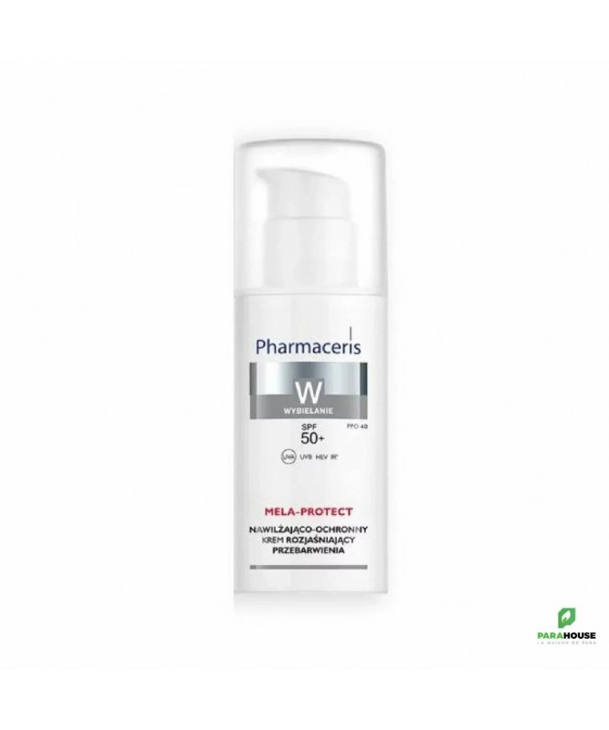 Convient aux personnes hypersensibles. Conseils d'utilisation : Utiliser PHARMACERIS MELA PROTECT SPF 50 le matin et plusieurs fois par jour pendant les périodes d'ensoleillement pour maintenir un niveau constant de protection solaire. Effet éclaircissant visible après min. 3 semaines d'utilisation. Pendant le traitement et pendant 10 semaines après sa fin, évitez d’exposer la peau au soleil. L'efficacité maximale est obtenue lorsque le traitement est associé à une crème de nuit et à un peeling de la série Pharmaceris