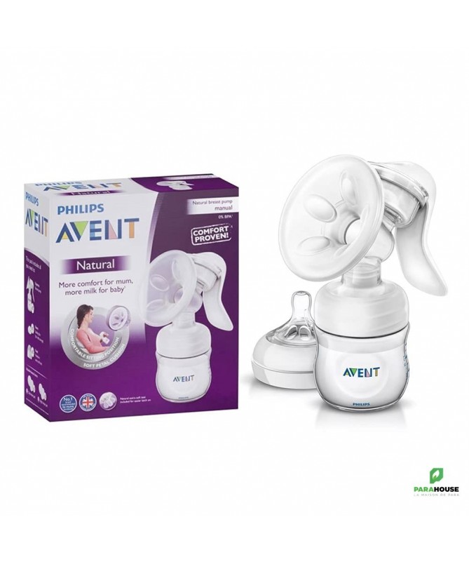Profitez du confort et de la douceur du tire-lait manuel portable Philips Avent. Avec technologie Natural Motion inspirée par la manière de téter des bébés, pour une montée de lait rapide. Vous pouvez ajuster facilement le rythme et l’aspiration. Convient à pratiquement tous les mamelons.L’anneau innovant en silicone, inspiré par la manière de téter des bébés, stimule le mamelon pour faciliter une montée de lait rapide. Pour un tirage de lait confortable et efficace.Coussin en silicone souple adaptatif de taille uniqueUne taille unique. Comme il y a autant de tailles et de formes de sein que de mamans, le coussin en silicone souple s’adapte en douceur à votre anatomie. Il convient à 99,98 % des tailles de mamelons* (jusqu’à 30 mm).Idéal pour les mamans qui tirent leur lait en déplacementLe tire-lait est compact et léger, ce qui le rend facile à ranger et à transporter, pour une utilisation plus simple et discrète en déplacement.