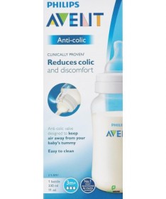 Notre biberon anti-coliques est conçu pour éloigner l’air du ventre de votre bébé afin de réduire les coliques et l’inconfort, tout en minimisant les interruptions d’alimentation. Grâce à sa valve anti-colique intégrée, l’air est évacué du ventre du bébé.Notre valve anti-colique est conçue pour éloigner l’air du ventre de votre bébé afin de réduire les coliques et l’inconfort. Au fur et à mesure que votre bébé tète, la valve intégrée dans la tétine fléchit pour permettre à l’air d’entrer dans le biberon pour empêcher l’accumulation de vide et l’aérer vers l’arrière du biberon. Il garde l’air dans le biberon et loin du ventre de bébé pour aider à réduire les coliques et l’inconfort.Le flacon anti-coliques Philips Avent réduit les tracas. Les bébés nourris avec les biberons anti-coliques Philips Avent ont connu 60% moins d’agitation la nuit que les bébés nourris avec les biberons anti-coliques d’un concurrent.