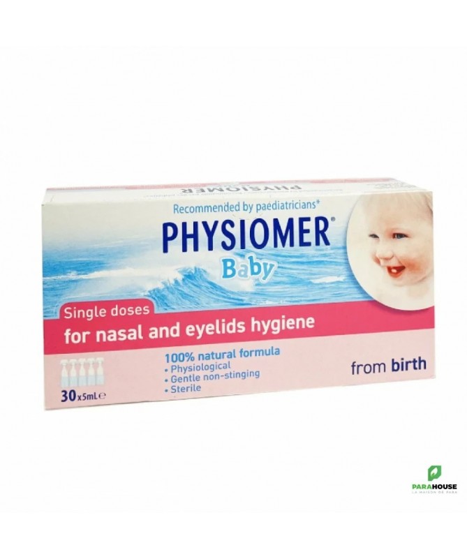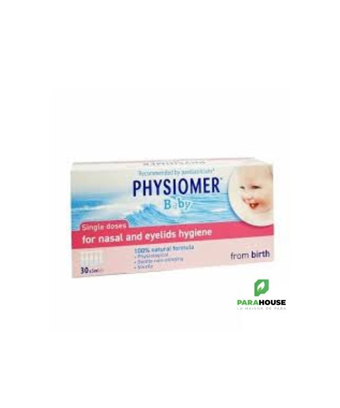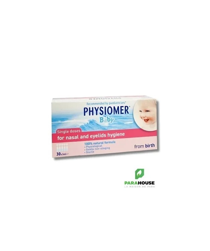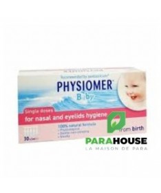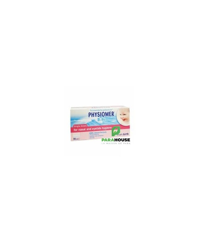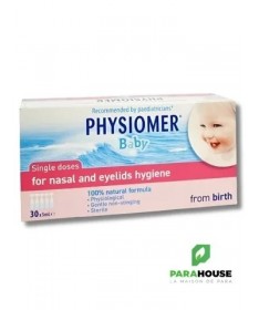 PHYSIOMER BABY UNIDOSES PHYSIOMER BABY UNIDOSES aident à nettoyer, hydrater et purifier le nez de votre bébé. Elles peuvent aussi être utilisées pour nettoyer les yeux. Les Unidoses PHYSIOMER Baby contiennent 100 % d’eau de mer, pour un lavage naturel du nez de votre bébé en cas de rhume ou d’infection des voies respiratoires supérieures. Cela améliore la respiration de votre bébé et donc son sommeil et son appétit. Elles peuvent etre utilisées en : Traitement : Les Unidoses PHYSIOMER Baby sont votre allié pour réduire le nez bouché de votre bébé causé par un rhume, une rhinite ou une rhinopharyngite. Découvrez les autres solutions PHYSIOMER® pour votre bébé. Prévention Les Unidoses PHYSIOMER Baby aident à éliminer le mucus, les bactéries, les virus, les allergènes (poussière, pollen …) et les polluants présents au niveau du nez de votre bébé. En lavant et en hydratant le nez de votre bébé chaque jour, les Unidoses PHYSIOMER® Baby aident à prévenir les complications ORL (comme les otites). Composition : Solution d'eau de mer isotonique (équivalent à 9 g/l en NaCl). Eau de mer 100 % naturelle Sans conservateur Stérile pH adapté à la physiologie de la muqueuse nasale Conseils d'utilisation : Il est recommandé de : Pour le lavage du nez : Aussi souvent que nécessaire, 4 fois par jour pour chaque narine. Une pulvérisation par narine. Au secours, un nez bouché! Si le nez du bébé est très encombré, utilisez le Spray PHYSIOMER® Baby avec le Mouche bébé PHYSIOMER Baby. Pour les soins des paupières : Aussi souvent que nécessaire. Les Unidoses PHYSIOMER sont également recommandées pour le nettoyage des paupières de votre bébé.