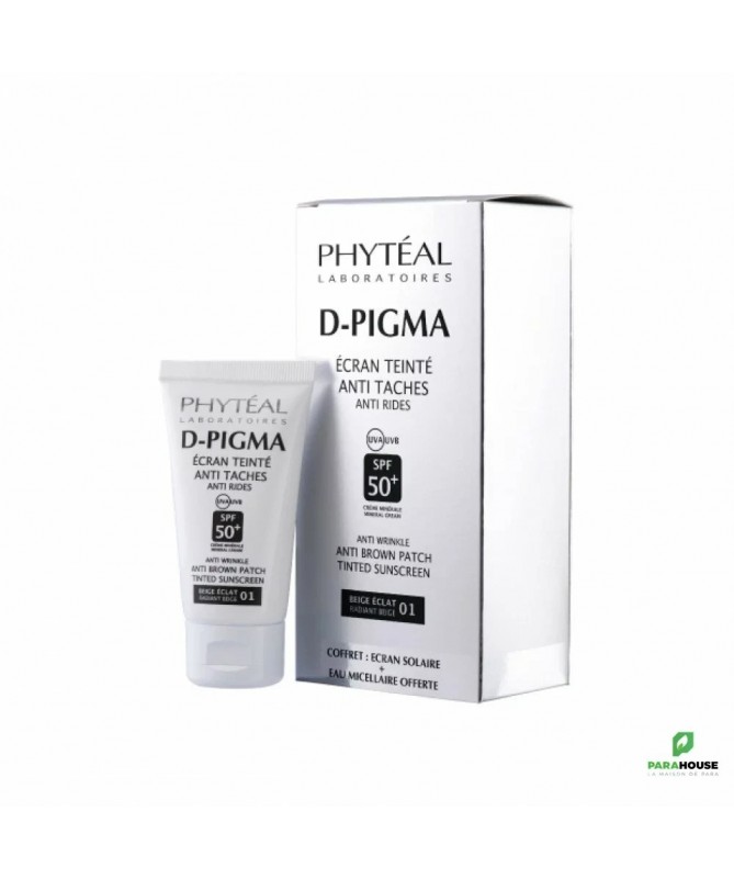 PHYTEAL DPIGMA ECRAN TEINTÉ BEIGE ECLAT SPF50+ 50ML PHYTEAL DPIGMA ECRAN TEINTÉ BEIGE ECLAT SPF50+ est un soin solaire hydratant 100 % minéral qui fournit une très haute protection et qui convient également à la peau normale, mixte et sèche. Ceci grâce à une combinaison de deux filtres minéraux qui donnent une très haute protection contre le rayonnement UV. Sa formule complète contient 5% du niacinamide connu aux pouvoirs bienfaiteurs cutanés infinis pour un teint plus uniforme et des taches corrigées. La niacinamide ou vitamine B3 a la capacité de réparer notre barrière cutanée, de prévenir les signes du vieillissement, d’éclaircir et de lisser la peau. Dpigma écran teinté éclat SPF 50+ présente ainsi les caractéristiques suivantes : Une belle teinte selon le phototype : beige éclat pour les peaux les plus claires. Un soin 6en1 : protection solaire, couvrance, hydratation, éclaircissant, anti taches et anti rides compatible avec les peaux normales, mixtes et sèches. Un SPF 50+ très haute protection solaire contre les UV : Une association de deux filtres minéraux : Oxyde de titane et oxyde de zinc qui donnent une protection complète contre le rayonnement UVA et UVB. L’indice de protection solaire ou SPF est le rapport entre le temps d’exposition aux rayons UVB avant l’apparition d'une rougeur de type érythème avec et sans crème solaire. Un soin hydratant adapté pour la peau normale, mixte et sèche, une texture fluide, teinté au touché sec et non comédogène permettant une absorption très rapide et un teint unifié. Notre soin solaire ne fournit pas seulement une protection contre la lumière solaire, mais également il hydrate la peau en profondeur grâce à l’ajout de l’huile d’argan et aux extraits d’aloévera, la peau perd en hydratation sous l’effet du rayonnement. Notre soin solaire est également enrichi en actifs antioxydants grâce à l’huile d’argan permettant ainsi de lutter contre les radicaux libres, responsables du vieillissement accéléré et prématuré de la peau. Il obéit à la norme COLIPA : la norme COLIPA est une norme européenne qui signifie que la protection UVA représente le 1/3 de la protection UVB. C’est seulement lorsque cette condition est remplie que les produits peuvent mentionner le logo UVA cerclé. Un soin waterproof grâce au choix de l’émulsifiant SWAP : waterproof ou résiste à l’eau signifie que le SPF doit, après deux bains, conserver au moins 50% de sa valeur initiale. Un soin hypoallergénique adapté pour tout âge. Un soin sans parabène et sans parfum pour plus de sécurité et de confort. Dpigma écran teinté éclat SPF 50+ convient à l’adulte et à la femme enceinte. Dpigma écran teinté éclat SPF 50+ ne présente aucune contre-indication et dispose d’une formule hypoallergénique, sans parabène, non comédogène, non testée sur les animaux, sans colorants et sans acides de fruits. Dpigma écran teinté éclat SPF 50+ est un soin complet pour un teint plus uniforme et des taches corrigés, mais nécessite d'être appliqué régulièrement 2 fois par jour et à la bonne dose. Dpigma écran teinté éclatSPF 50+ est un soin dermo cosmétique 100% naturel et 100% minéral qui combine une protection solaire, un fond de teint, une crème hydratante, un soin éclaircissant, un soin anti taches et un soin anti rides. Composition : Huile d’argan : utilisée pour ses propriétés nourrissantes, régénératrices et anti-âge. Ce nectar précieux est gorgé d’acides gras essentiels riches en Oméga-3, Oméga-6 et de vitamine E, antioxydant recommandé pour aider à lutter contre les signes de vieillissement et de relâchement prématurés de la peau. En plus de ses propriétés intéressantes pour la peau, l’huile d’argan agit comme booster de SPF permettant d’augmenter de manière significative l’efficacité des filtres solaires auxquels elle est associée. Oxyde de titane : NON nano particules permettant de lutter contre les coups de soleil et joue un rôle clé dans l’élaboration des produits adaptés aux peaux sensibles. C’est un filtre minéral naturel qui a la particularité de former une sorte de bouclier à la surface de la peau pour réfléchir les UVB (effet miroir). Oxyde de zinc : NON nano particules, c’est un filtre minéral protecteur anti UV utilisé dans les crèmes solaires en agissant comme un bouclier à la surface de la peau. En effet, il est efficace pour bloquer et détourner les rayons UVA et protège ainsi la peau des effets nocifs du soleil. Niacinamide (5%) : action éclaircissante, anti taches et anti rides. Extraits d’aloé vera : utilisé pour ses propriétés nutritives, il apporte à la peau les vitamines et oligo-éléments essentiels à sa beauté. Cet extrait stimule en outre la réparation de la peau et prend soin des peaux sujettes à rougeurs. Aux vertus apaisantes, il soulage les peaux sujettes à irritations et démangeaisons. Vitamine E : antioxydant et action revitalisante. Conseils d'utilisation : Parties du corps : Sur le visage, le cou et le décolleté. Dosage : Appliquer l’équivalent d’une noisette de Dpigma écran teinté éclat SPF 50+ avant l’exposition au soleil en tapotant sur les parties à protéger et en partant du bas vers le haut afin d’assurer une application totale. Fréquence : 2 fois par jour et en dose suffisante. Usage : Externe uniquement. EN CADEAU : PHYTEAL DPIGMA EAU MICELLAIRE A L'ALOE VERA 150ML PHYTEAL DPIGMA EAU MICELLAIRE A L'ALOE VERA est un nettoyant extrêmement doux qui vous permet de nettoyer votre peau sans effort et surtout sans perturber l’équilibre délicat dont votre peau a besoin pour rester saine.