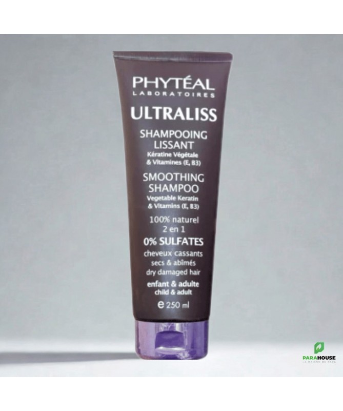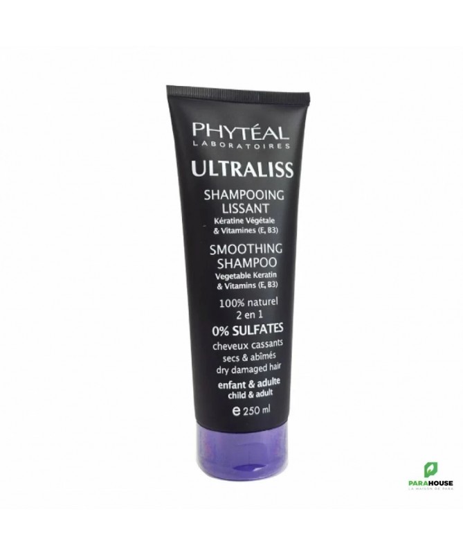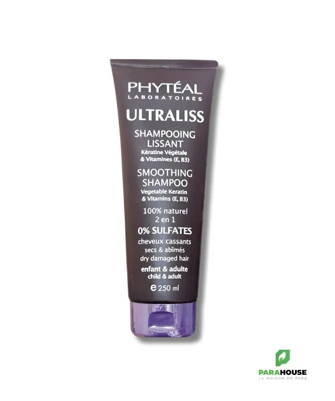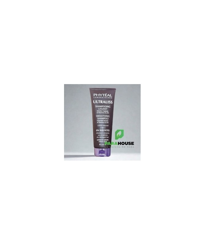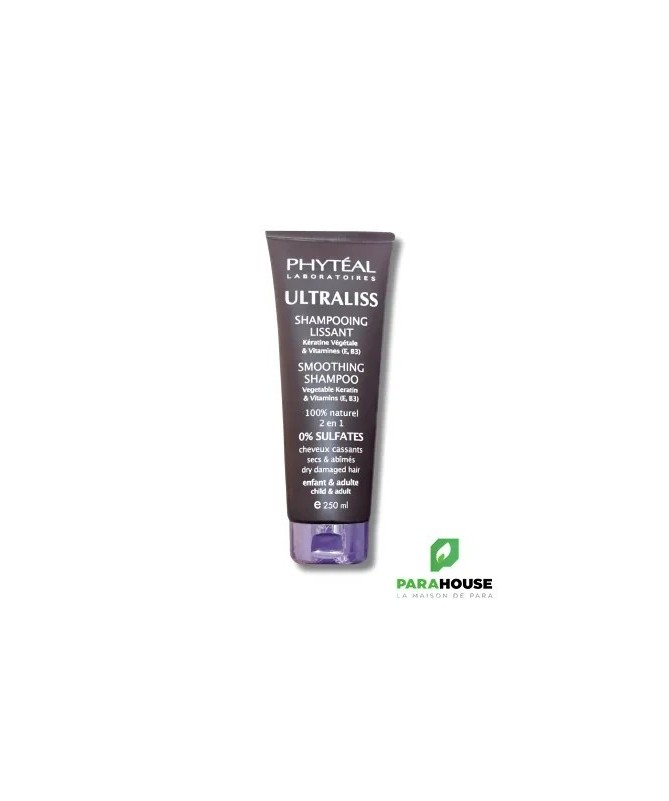 PHYTEAL ULTRALISS SHAMPOOING LISSANT A LA KERATINE 250ML ULTRALISS shampooing lissant est un soin réparant pour les cheveux cassants et abimés. Composé de kératine organique, ULTRALISS shampooing lissant apporte brillance et tonicité à votre chevelure. Grâce aux vertus de la kératine, ULTRALISS shampooing lissant restaure et protège les chevelures endommagées. Vos cheveux seront faciles à peigner et prêts pour un coiffage lissant sans aucune résistance. Il redonnera vigueur et force. Conseils d’utilisation : Grâce aux propriétés lissantes de la kératine organique, PHYTÉAL ULTRALISS SHAMPOOING apporte souplesse et douceur aux cheveux cassants. Les cheveux seront lisses, lumineux, faciles à peigner et prêts pour un coiffage lissant sans aucune résistance. Appliquer sur cheveux humides, laisser agir 1 minute puis rincer. Eviter le contact avec les yeux. Usage externe uniquement. ULTRALISS SHAMPOOING LISSANT A LA KÉRATINE ne présente aucune contre-indication. Formule hypoallergénique, non comédogène, non testée sur les animaux, sans colorants et sans acides de fruits. Composition : Base lavante douce (20g) Kératine (5g) Vitamine B3 Vitamine E Aloe Vera Extrait de fruit