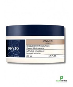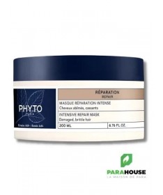 Phyto Réparation Masque Réparation IntenseRedonnez vie à vos cheveux abîmés et cassants avec le Phyto Réparation Masque Réparation Intense. Ce soin revitalisant répare en profondeur et restaure la beauté naturelle de votre chevelure.DescriptionFormulé avec le complexe biomimétiqueKératine A18+composé de 18 acides aminés, ce masque cible les zones endommagées pour recréer la matière et consolider la fibre capillaire. Enrichi en avoine noire et lupin pour renforcer les cheveux, et en extrait de mauve blanche pour une brillance exceptionnelle dès la première application.BénéficesRéparation en profondeur :restaure les cheveux abîmés et cassants.Renforcement :consolide la fibre capillaire pour une chevelure plus résistante.Brillance sublimée :cheveux deux fois plus brillants grâce à la mauve blanche.Formule naturelle :sans silicones et sans colorants.IndicationsCheveux abîmés, cassants ou fragilisés.Longueurs exposées aux agressions mécaniques ou chimiques.Pour ceux recherchant un soin naturel et efficace sans composants nocifs.Conseils d’utilisationAprès le shampooing, essorez légèrement les cheveux.Appliquez le masque sur les longueurs et pointes.Laissez poser 5 à 10 minutes selon le niveau de réparation souhaité.Rincez abondamment à l’eau tiède.Pour un résultat optimal, utilisez 1 à 2 fois par semaine.