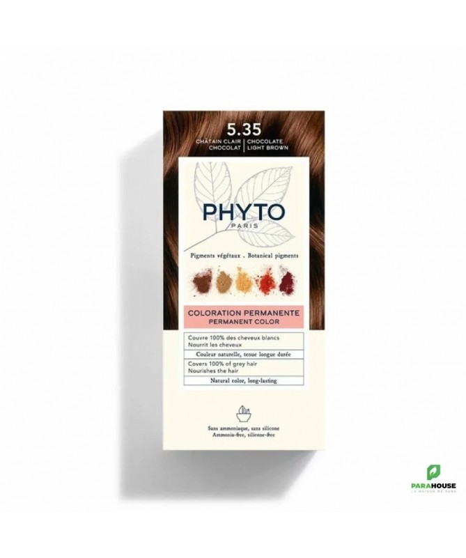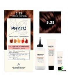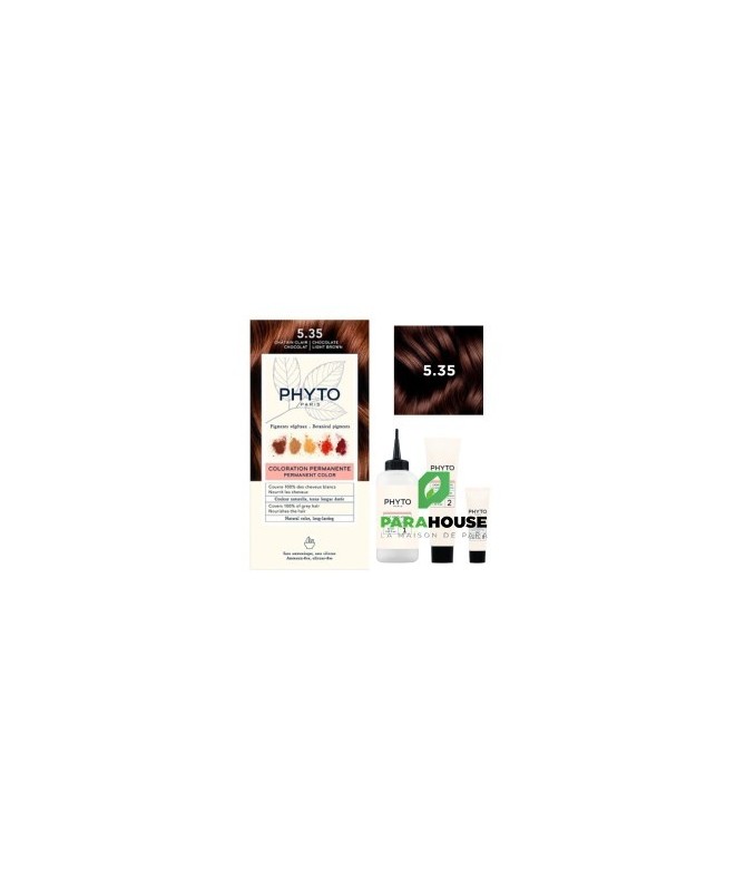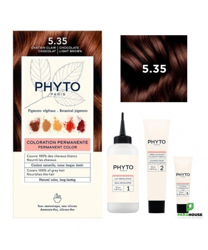 PHYTOCOLOR - COULEUR SOIN 5.35 CHATAIN CLAIR CHOCOLAT PHYTO COLOR associe haute technologie et expertise des plantes pour une couleur éclatante et ultra brillante : Couvre 100 % des cheveux blancs dès la 1ère application. Assure une tenue longue durée de la couleur. Formulé comme un soin, PHYTO COLOR respecte le cheveu et le cuir chevelu et minimise les risques d'allergies. Facile à appliquer, sa crême onctueuse ne coule pas et permet une répartition précise et uniforme de la racine à la pointe du cheveu. Composition : 1 LAIT RÉVÉLATEUR / MILK DEVELOPER : INGREDIENTS : AQUA / WATER / EAU. CETEARYL ALCOHOL. HYDROGEN PEROXIDE. CETEARETH-33. PHOSPHORIC ACID. OXYQUINOLINE SULFATE. 51000SA. 2 CRÈME COLORANTE / COLORING CREAM 5.5 : INGREDIENTS : AQUA / WATER / EAU. CETEARYL ALCOHOL. ETHANOLAMINE. PROPYLENE GLYCOL. CETEARETH-25. CETETH-2. PEG-2 RAPESEEDAMINE. PEG-4 RAPESEEDAMIDE. TOLUENE-2,5-DIAMINE SULFATE. OXIDIZED CORN OIL. P-AMINOPHENOL. 4-CHLORORESORCINOL. SIMMONDSIA CHINENSIS (JOJOBA) SEED OIL. SODIUM SULFITE. COCOS NUCIFERA (COCONUT) OIL. PROPANEDIOL. 4-AMINO-2-HYDROXYTOLUENE. FRANGULA ALNUS BARK EXTRACT. 2-METHYLRESORCINOL. PARFUM / FRAGRANCE. MALTODEXTRIN. RUBIA TINCTORUM ROOT EXTRACT. POLYQUATERNIUM-22. ASCORBIC ACID. M-AMINOPHENOL. SODIUM HYDROSULFITE. TETRASODIUM EDTA. HAEMATOXYLUM CAMPECHIANUM WOOD EXTRACT. GENISTA TINCTORIA FLOWER/LEAF/STEM EXTRACT. COREOPSIS TINCTORIA FLOWER/LEAF/STEM EXTRACT. ZIZIPHUS JOAZEIRO BARK EXTRACT. GARDENIA TAITENSIS FLOWER. OCTADECYL DI-T-BUTYL-4-HYDROXYHYDROCINNAMATE. PHENYL METHYL PYRAZOLONE. TOCOPHEROL. PH10107. 3 MASQUE PROTECTEUR DE COULEUR / COLOR PROTECTING MASK : INGREDIENTS: AQUA / WATER / EAU. CETYL ALCOHOL. CETEARYL ALCOHOL. BEHENTRIMONIUM CHLORIDE. PHENOXYETHANOL. PARFUM / FRAGRANCE. PONGAMIA GLABRA SEED OIL. ETHYL MACADAMIATE. CETRIMONIUM CHLORIDE. HYDROXYETHYLCELLULOSE. CHLORPHENESIN. PROPYLENE GLYCOL. HYDROLYZED PEA PROTEIN. POLYQUATERNIUM-53. HIBISCUS SABDARIFFA FLOWER EXTRACT. TETRASODIUM EDTA. GLYCERIN. CAESALPINIA SPINOSA FRUIT EXTRACT. CITRIC ACID. DISODIUM PHOSPHATE. POTASSIUM SORBATE. SODIUM PHOSPHATE. POLYSORBATE 60. HELIANTHUS ANNUUS (SUNFLOWER) SPROUT EXTRACT. SODIUM BENZOATE. TOCOPHEROL. MALIC ACID. LIMONENE. LINALOOL. HEXYL CINNAMAL. 1411B. Conseil d'utilisation : Recommandée avant toute coloration ou décoloration, l’HUILE D’ALÈS assure efficacement la protection de la fibre capillaire et du cuir chevelu. En présence de plus de 50 % de cheveux blancs, il est conseillé de mélanger une couleur naturelle à une couleur à reflets pour un résultat optimal.