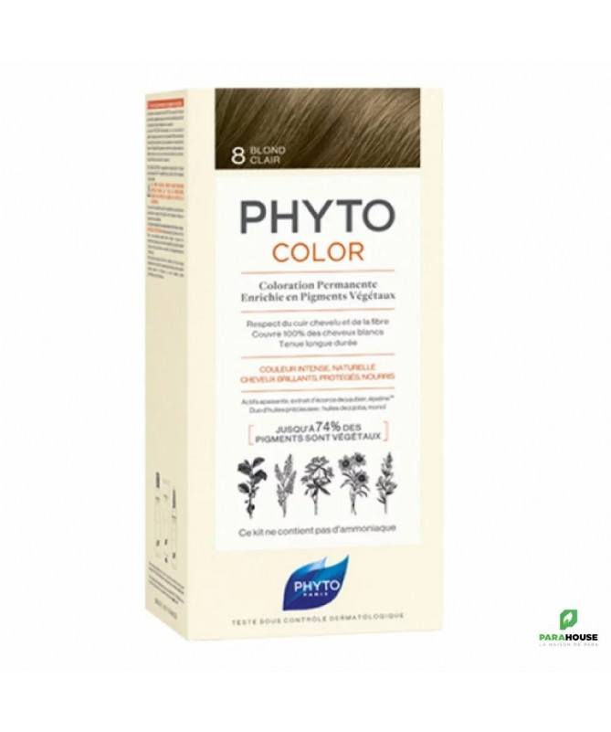 PHYTOCOLOR - COULEUR 8 Blond Clair PHYTO COLOR associe haute technologie et expertise des plantes pour une couleur éclatante et ultra brillante : Couvre 100 % des cheveux blancs dès la 1ère application. Assure une tenue longue durée de la couleur. Formulé comme un soin, PHYTO COLOR respecte le cheveu et le cuir chevelu et minimise les risques d'allergies. Facile à appliquer, sa crême onctueuse ne coule pas et permet une répartition précise et uniforme de la racine à la pointe du cheveu. Conseil d'utilisation : Recommandée avant toute coloration ou décoloration, l’HUILE D’ALÈS assure efficacement la protection de la fibre capillaire et du cuir chevelu. En présence de plus de 50 % de cheveux blancs, il est conseillé de mélanger une couleur naturelle à une couleur à reflets pour un résultat optimal.