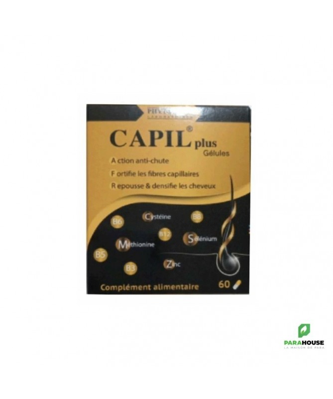 Description :Phyoever CAPIL PLUS ANTI-CHUTE CHEVEUX est un complément alimentaire composé essentiellement d’acides aminés soufrés (cystine et méthionine), des vitamines et des minéraux.C’est un traitement qui dure 3 mois : un programme intensif de 2 gélules par jourConseils d’utilisation :Il est indiqué de prendre 1 gélules le matin et 2 gélules à midi pour un traitement de 20 jours par mois pendant 3 mois.Il est conseillé d’avaler les gélules avec un grand verre d’eau à savoir 250mlIl ne faut pas laisser à la portée des jeunes enfants. et surtout pas dépasser la dose journaliére prescrite.Composition :Le FORCAPIL est un ensemble de Cystine, méthionine, complexe vitaminique B, vitamine D, zinc vitamine E, vitamine K fer, calcium, chrome, cuivre, magnésium, manganèse et potassium.