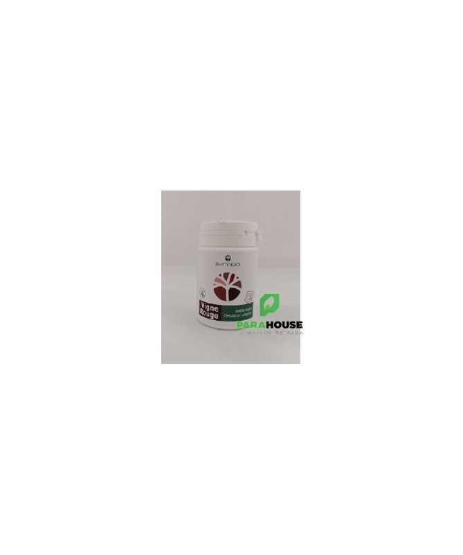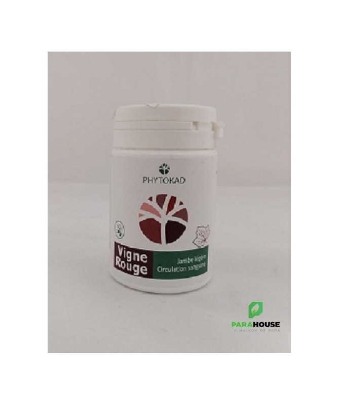 PHYTOKAD VIGNE ROUGE 60 GELULES PHYTOKAD VIGNE ROUGE contribue à améliorer la circulation sanguine veineuse et la micro-circulation cutanée. Ces effets se traduisent par un soulagement des jambes lourdes et les hémorroïdes. Il est indiqué aussi pour le traitement des varices puisqu'il permer d'améliorer la contention de la paroi veineuse et à diminuer sa perméabilité Composition : Gélule de 300 mg de feuille de vigne rouge concentrée standardisé à 4 :1, (1 gélule équivalent à 1,2g de poudre de feuille.) Conseils d'utilisation : Il est conseillé de prendre 2 à 3 gélules de PHYTOKAD VIGNE ROUGE par jour. Une cure de 1 mois à 3 mois renouvelable si besoin