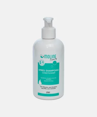 L'après-shampoing Moline est formulé avec de l'huile d'avocat, de l'huile d'amande douce et de l'Aloe Vera bio.