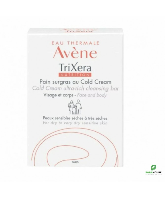 AVENE TRIXERA NUTRITION PAIN SURGRAS AU COLD CREAM Avene TRIXERA permet de Nettoyer en douceur et respecter l’intégrité cutanée (non desséchant)., Ce pain Protège et nourrit grâce aux propriétés nutritives et adoucissantes du Cold Cream. AVENE TRIXERA PAIN SURGRAS pour un hygiène quotidienne de toutes les peaux sensibles sèches à très sèches de la famille. Nourrissons, enfants, adultes. Mousse onctueuse et abondante. Composition : Il est recommandé au consommateur de vérifier systématiquement la composition du produit avant son achat. SODIUM COCOYL ISETHIONATE. STEARIC ACID. SODIUM LAURATE. SODIUM STEARATE. PARAFFIN. SODIUM MYRISTATE. WATER (AQUA). FRAGRANCE (PARFUM). PEG-45 PALM KERNEL GLYCERIDES. AVENE THERMAL SPRING WATER (AVENE AQUA). BEESWAX (CERA ALBA). CETYL ALCOHOL. GLYCERYL STEARATE. MINERAL OIL (PARAFFINUM LIQUIDUM). TITANIUM DIOXIDE (CI 77891). TOCOPHERYL ACETATE.
