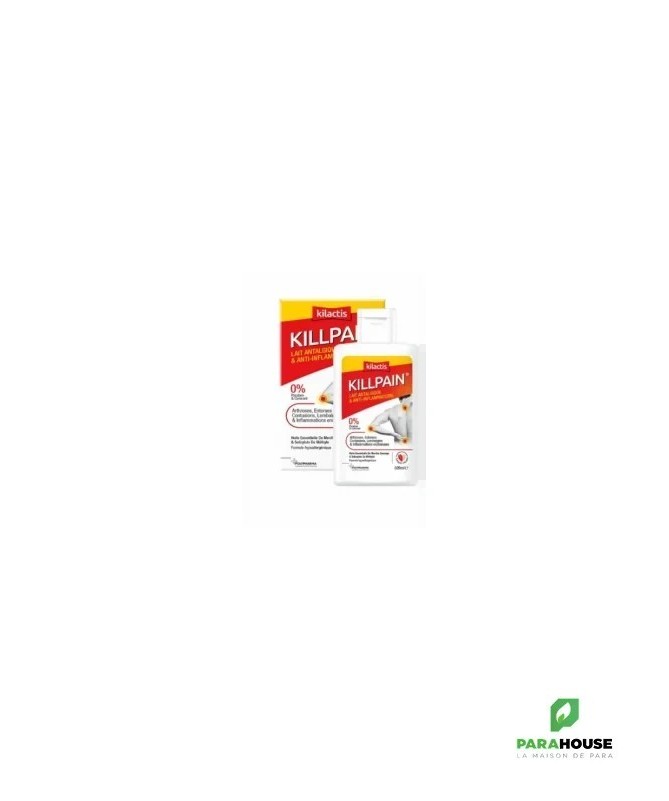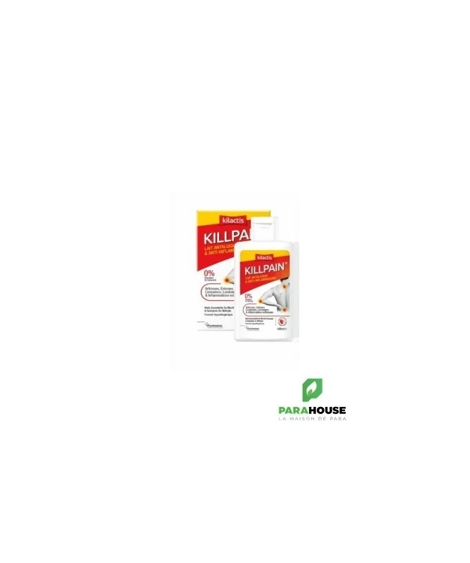 KILLPAIN est un lait myorelaxant aux propriétés apaisantes qui favorisent le confort articulaire et musculaire. Sa composotion en huiles essentielles (lavande, eucalyptus), menthol et salicylate de méthyle, permet un massage décontractant avec une sensation de fraicheur et de bien être sans laisser la peau grasse ou collante. • Arthrose, entorses, lombalgies & tendinites • Huile essentielle de menthe sauvage & salicylate de méthyle