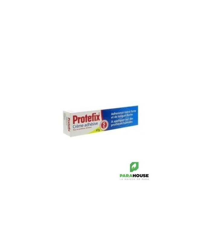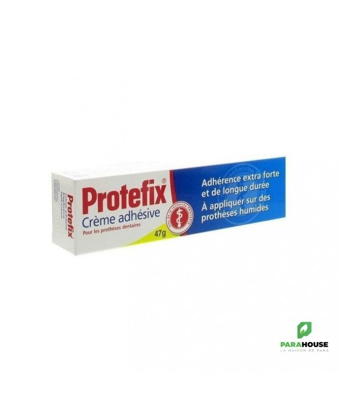 Crème adhésive Protefix® extra forte pour une fixation optimaleet un confort tout au long de la journée.• Efficace sur dentier humide• Une adhérence efficace des bords qui empêche l’infiltration de résidus alimentaires• Effet instantané et durable•Goût neutreMode d'emploi:Nettoyer la prothèse et appliquer la crème adhésive Protefix® en plusieurs points espacés sur la prothèse mouillée.Mettre la prothèse dans la bouche et presser fortement pendant quelques secondes.Contenance : 47g