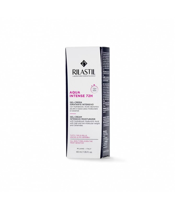 Rilastil Aqua Intense 72H Gel-Crème est un soin innovant qui offre une hydratation instantanée et durable. Sa texture légère de gel-crème pénètre rapidement, apportant un effet rafraîchissant tout en laissant la peau douce, repulpée et intensément hydratée. Il assure une hydratation continue pendant 72 heures, même dans des conditions extrêmes, et prévient les sensations de tiraillement.Enrichi en actifs hydratants et apaisants, ce soin renforce la barrière cutanée et aide à maintenir l’équilibre hydrique de la peau. Il est particulièrement adapté aux peaux déshydratées, sèches et sensibles, et peut être utilisé quotidiennement pour un confort optimal.Indications :- Peaux déshydratées, sèches et sensibles.- Hydratation intense et longue durée.- Usage quotidien pour le visage.Caractéristiques :- Gel-crème hydratant 72H- Texture légère et non grasse- Effet rafraîchissant et apaisant- Convient aux peaux sensiblesConseils d’utilisation :Appliquez matin et soir sur le visage propre et sec. Massez jusqu'à absorption complète. Peut être utilisé seul ou en complément d'un soin de jour ou de nuit.Précautions :Évitez le contact avec les yeux. En cas de contact, rincez abondamment à l’eau claire.Composition :Aqua (Water), Glycerin, Dimethicone, Sodium Hyaluronate, Urea, Panthenol, Allantoin, Sodium Chloride, Parfum (Fragrance), et autres agents hydratants et apaisants.