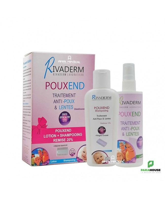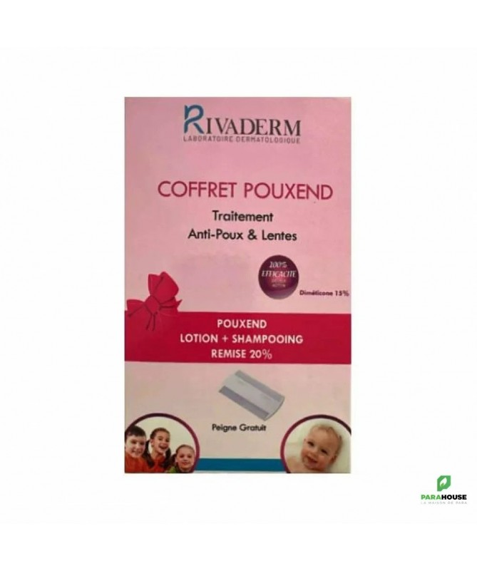 Description:- un shampooing:Le shampooing anti-poux pouxend est un traitement d'entretien contre les poux.Pouxend shampooing est efficace, non toxique et doux. Il peut être utilisé chez l'adulte et l'enfant à partir de 2 ans.- une lotion anti poux et lentes:Pouxend lotion à base diméticone et sans insecticide est à haute efficacité prouvée par des études cliniques.Pouxned lotion est le premier des traitements anti-poux, son action physique est douce sur les cheveux et la peau, avec une formule est non grassePouxned lotion est indiqué pour les adultes et les enfants à partir de 6 mois.Conseils d'utilisation:- un shampooing:Appliquer le shampooing pouxend sur les cheveux légèrement humides. Masser le cuir chevelu, laisser le shampooing agir pendant 10 minutes. Passer le peigne pour éliminer les poux morts puis rincer abondamment à l'eau clair. Répéter le traitement après 7 à 8 jours- une lotion anti poux et lentes:Appliquer la lotion Pouxend sur le cuir chevelu et les cheveux secsMasser les cheveux afin d'obtenir une imprégnation complète de la chevelureLaisser Pouxend lotion agir pendant 25 minutes.Laver les cheveux avec pouxend shampooing en peignant puis rincer à l'eau.