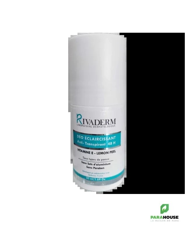 Ce produit développé par le laboratoire Rivaderm est un déodorant anti-transpirant et éclaircissant qui agit efficacement contre les tâches et les mauvaises odeurs provoquées par la transpiration excessive durant la chaleur ou activités physique intenses Ce déodorant est riche en lemon peel et en vitamine E , permettant de minimiser l'hyperpigmentation cutanée au niveau des aisselles en apportant un effet éclaircissant remarquable et en garantissant une protection et une fraicheur qui durent toute la journée