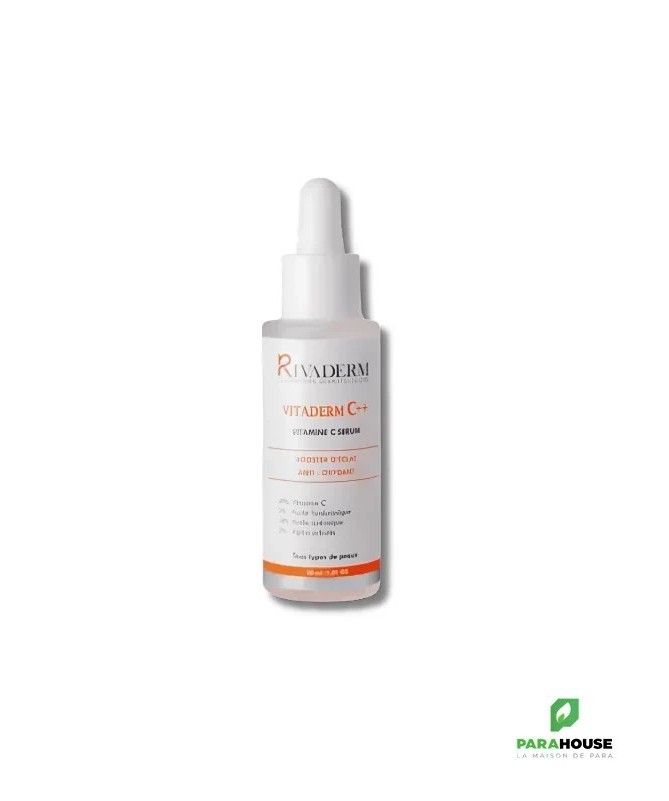 LeRivaderm C++ Sérum Vitamine C 30mlest un soin multifonction hautement concentré, conçu pour revitaliser et éclaircir la peau grâce à une combinaison puissante d'ingrédients antioxydants essentiels. Ce sérum 4 en 1, riche envitamine C stabilisée multiforme,acide hyaluronique,acide azélaïque,alpha-arbutine, etpanthénol, agit comme un véritable booster de peau en offrant une efficacité remarquable pour un teint uniforme et éclatant.- 20% de vitamine C: Un concentré puissant qui lutte contre les radicaux libres, éclaire le teint, et améliore l'apparence des taches pigmentaires.- 2% d'acide hyaluronique: Il hydrate intensément, aide à repulper la peau et atténue les ridules pour une peau plus lisse et ferme.- 10% d’acide azélaïque: Ce puissant ingrédient cible les imperfections cutanées, unifie le teint et apporte un effet éclaircissant pour une peau plus claire.- 2% d'alpha-arbutine: Réduit visiblement les taches brunes et contribue à uniformiser le teint pour une peau radieuse.- Panthénol: Apaise et hydrate, favorisant la santé et le confort de la peau tout au long de la journée.Avec une action combinée contre les signes de vieillissement et les irrégularités cutanées, ce sérum convient à tous les types de peau, offrant des résultats visibles : une peau éclatante, lissée, et visiblement plus jeune.