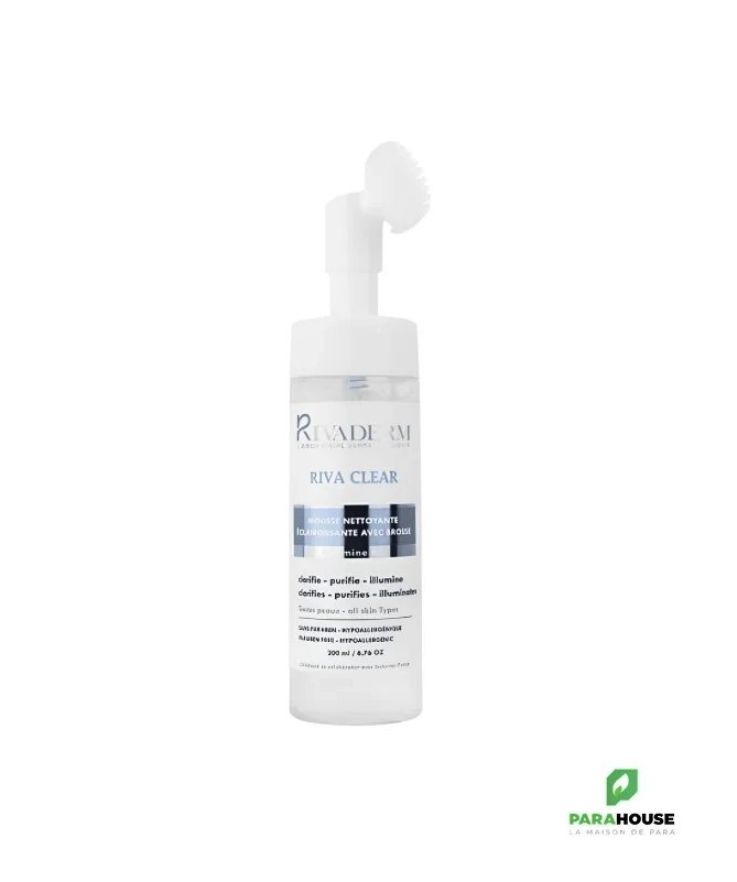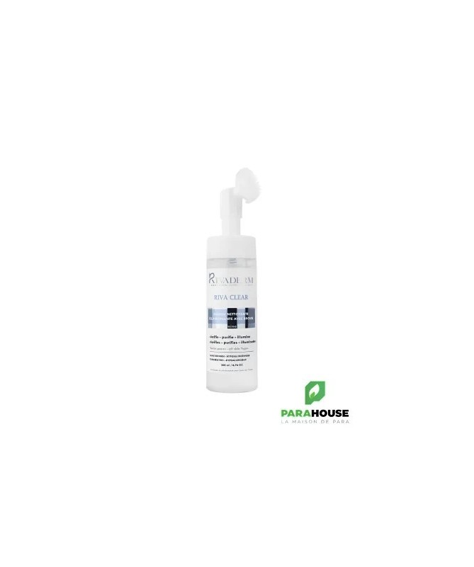 Riva Clear Mousse Nettoyante avec Brosse - Purifie et Éclaire la PeauDécouvrez la mousse nettoyanteRiva Clearavec brosse, un soin délicat et efficace qui purifie votre peau tout en lui apportant un éclat naturel. Grâce à sa formule innovante à triple action, cette mousse nettoyante est idéale pour retrouver une peau visiblement plus claire et lumineuse.Actions et Bénéfices :- Éclaircissante: Grâce à sa richesse enAHA(acides de fruits), cette mousse nettoyante aide à éclaircir la peau en douceur, la rendant plus lumineuse et uniforme.- Régénérante et anti-âge: Enrichie envitamine B3, elle stimule la régénération cellulaire, contribuant ainsi à réduire les signes de l'âge et à revitaliser la peau.- Hydratante: Lesextraits d'aloé veraet d'avoineapportent une hydratation en profondeur, laissant la peau douce, souple et nourrie.Caractéristiques :- Éclaircissante: Clarifie, purifie et illumine la peau pour un teint éclatant.- Hypoallergénique: Convient à tous les types de peau, même les plus sensibles.- Sans paraben, sans alcool, sans savon: Formulé pour respecter l'équilibre naturel de la peau.Actifs clés :- Vitamine B3: Réduit les signes de l'âge et améliore l'élasticité de la peau.- AHA (Acides de fruits): Exfolie en douceur pour une peau plus lumineuse.- Extrait d'Avoine et Aloe Vera: Hydrate et apaise la peau tout en lui apportant douceur et confort.Conseils d'utilisation :Appuyez sur la pompe pour faire sortir la mousse et appliquez sur votre visage en effectuant des mouvements circulaires pour nettoyer la peau en profondeur. Utilisez-le quotidiennement pour des résultats optimaux.