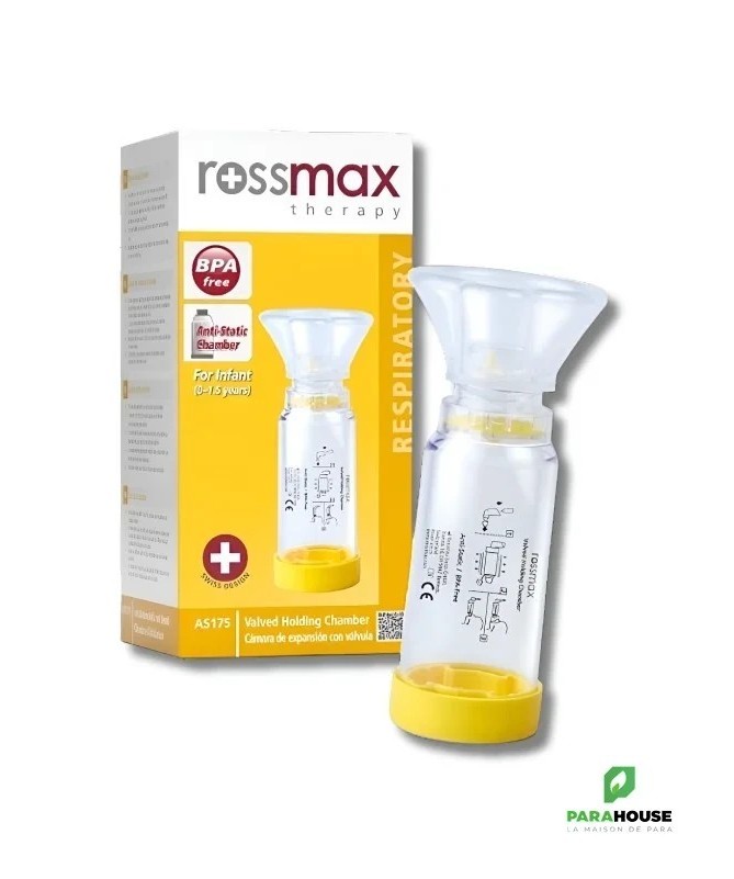 Chambre d'inhalation - Haute Efficacité et Confort- Valve unidirectionnelle pour une inspiration facile et efficace.- Embout universel compatible avec tous les doseurs du marché.- Matériau antistatique pour éviter l’adhérence du médicament aux parois.- Masque en silicone souple et flexible offrant confort et étanchéité.- Démontage simple et rapide pour un nettoyage facile.- Sans latex et sans BPA.- Volume de la chambre : 175 ml.- Bouchon de protection pour embout afin de prévenir salissures et débris.Cette chambre d'inhalation anti-statique est conçue pour optimiser la délivrance de la dose prescrite par les inhalateurs-doseurs. Elle assure une parfaite étanchéité grâce à son masque souple, tout en garantissant une hygiène optimale avec son système de démontage rapide.